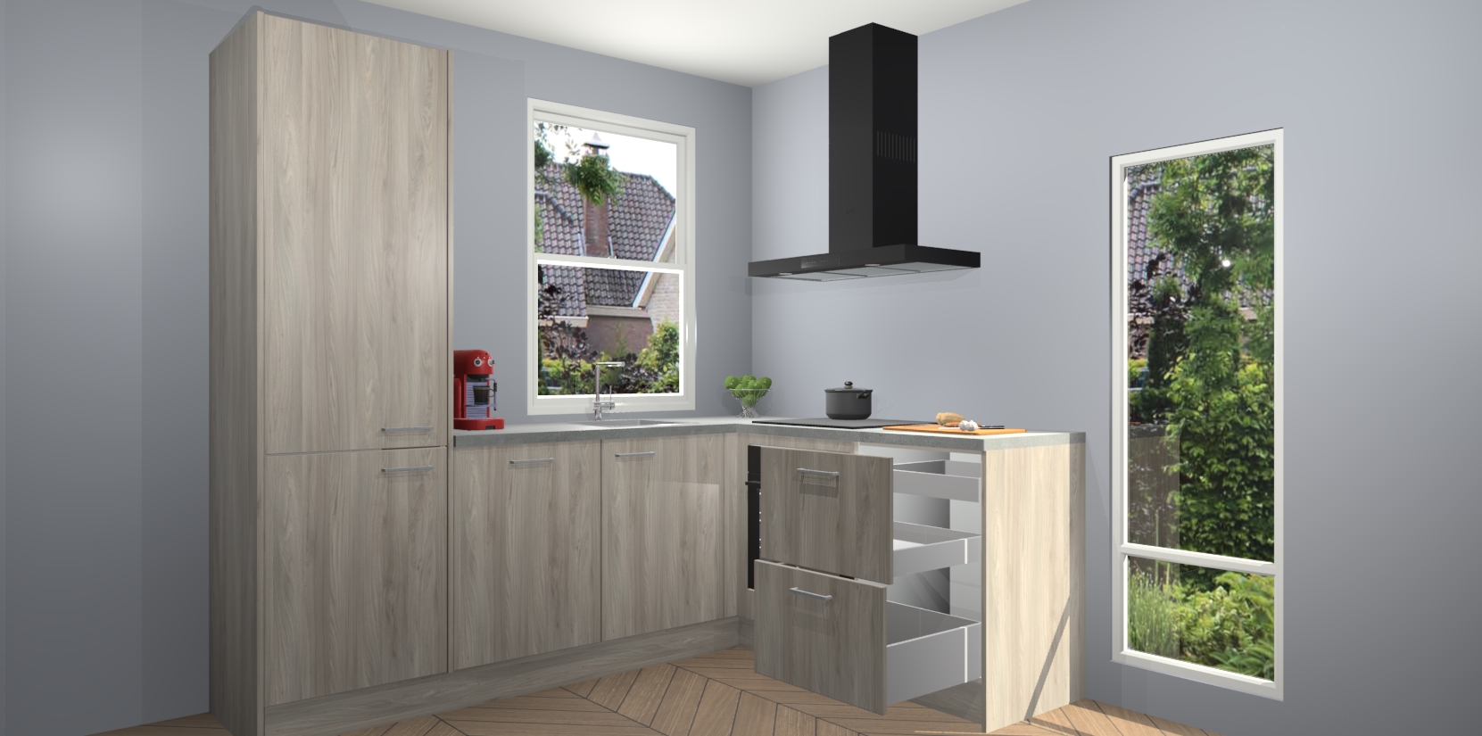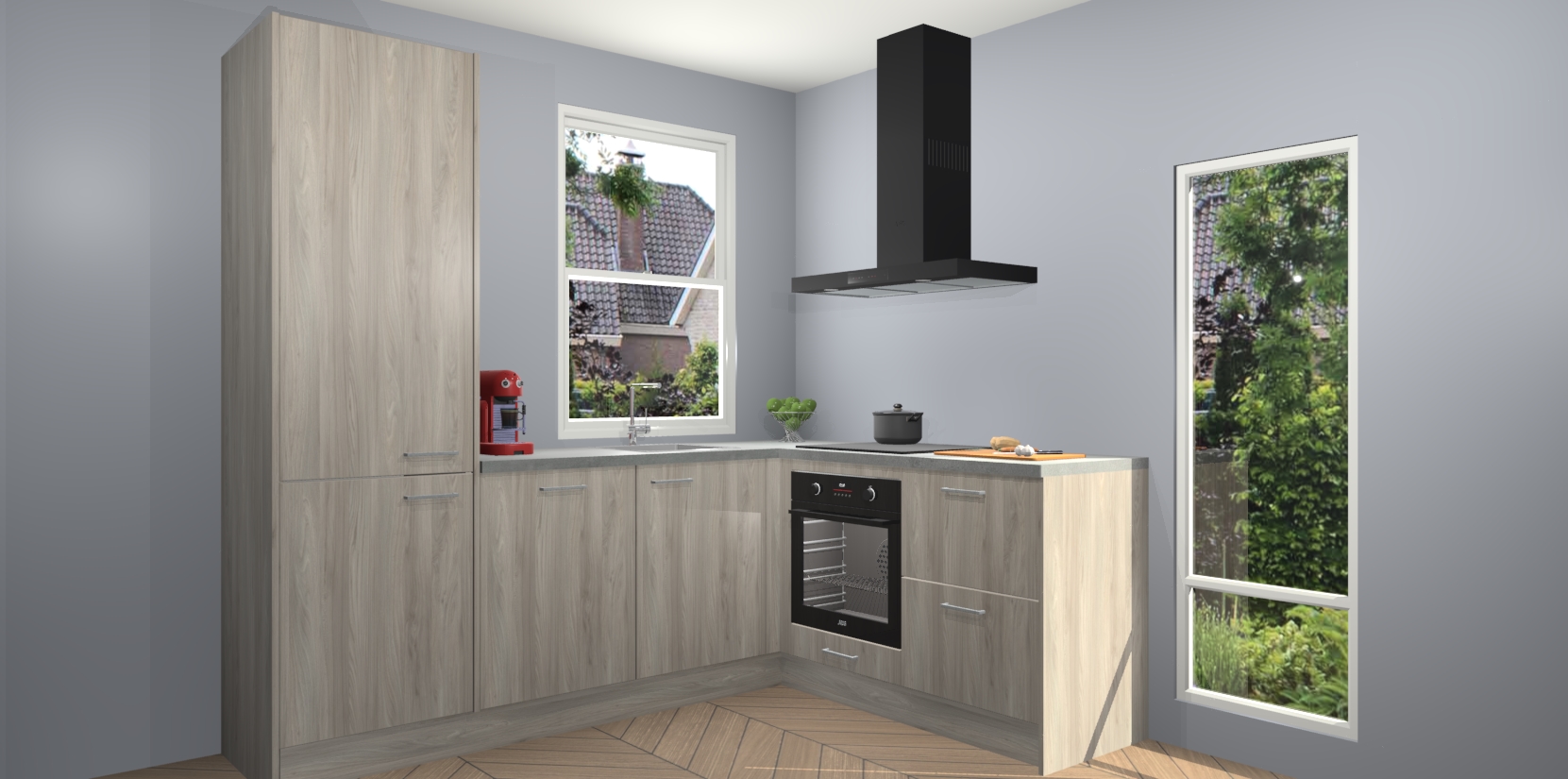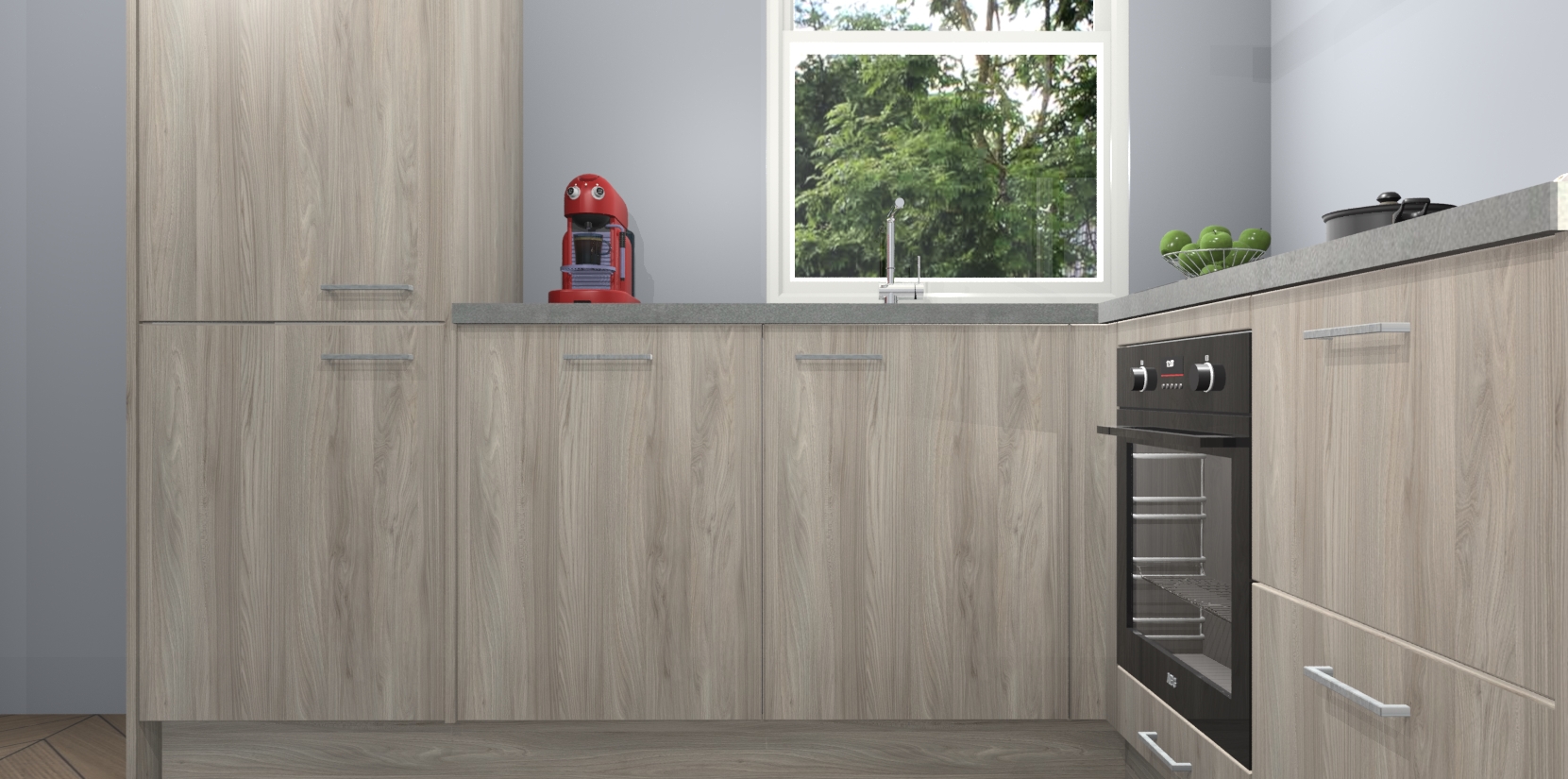 De prachtige Olm keuken Phuket is de perfecte keuze als u op zoek bent naar een moderne hoekkeuken met alle luxe en comfort die u kunt verwachten! De uitstraling in het houtlook-design draagt bij aan de warme sfeer die u nu al voelt wanneer u er naar kijkt. Heeft u genoeg van ouderwetse keukens? Probeer dan direct deze moderne, mooie hoekkeukens en laat iedereen verbluft achter!