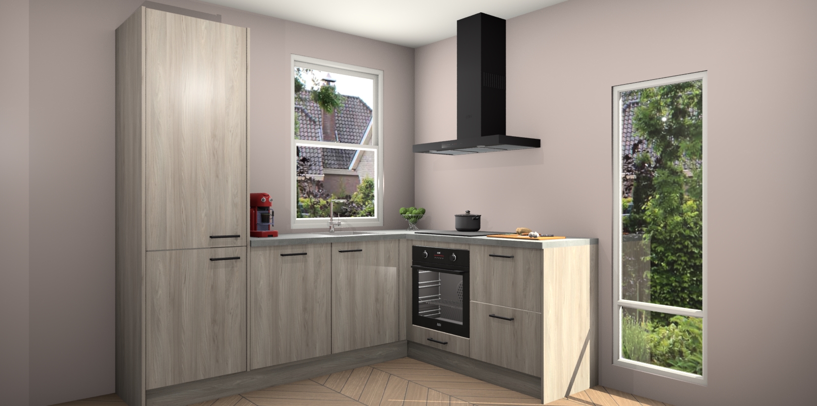 De Olm keuken Phuket heeft alles wat u maar kunt wensen. Niet alleen zijn er softclose deuren, maar ook 5 ingebouwde apparaten: een oven, inductiekookplaat, afzuigkap, vaatwasser en koelkast - waarbij u later gemakkelijk naar het AEG merk, van inductiekookplaat naar kookplaat met geïntegreerde afzuiging of van oven naar combimagnetron kunt upgraden. Dat alles tegen een vast laag tarief! Bovendien geeft de Olm keuken Phuket supersnelle levering van 7 weken. Echt iets voor u als u er niet op wilt wachten om het resultaat te zien in eigen keuken!