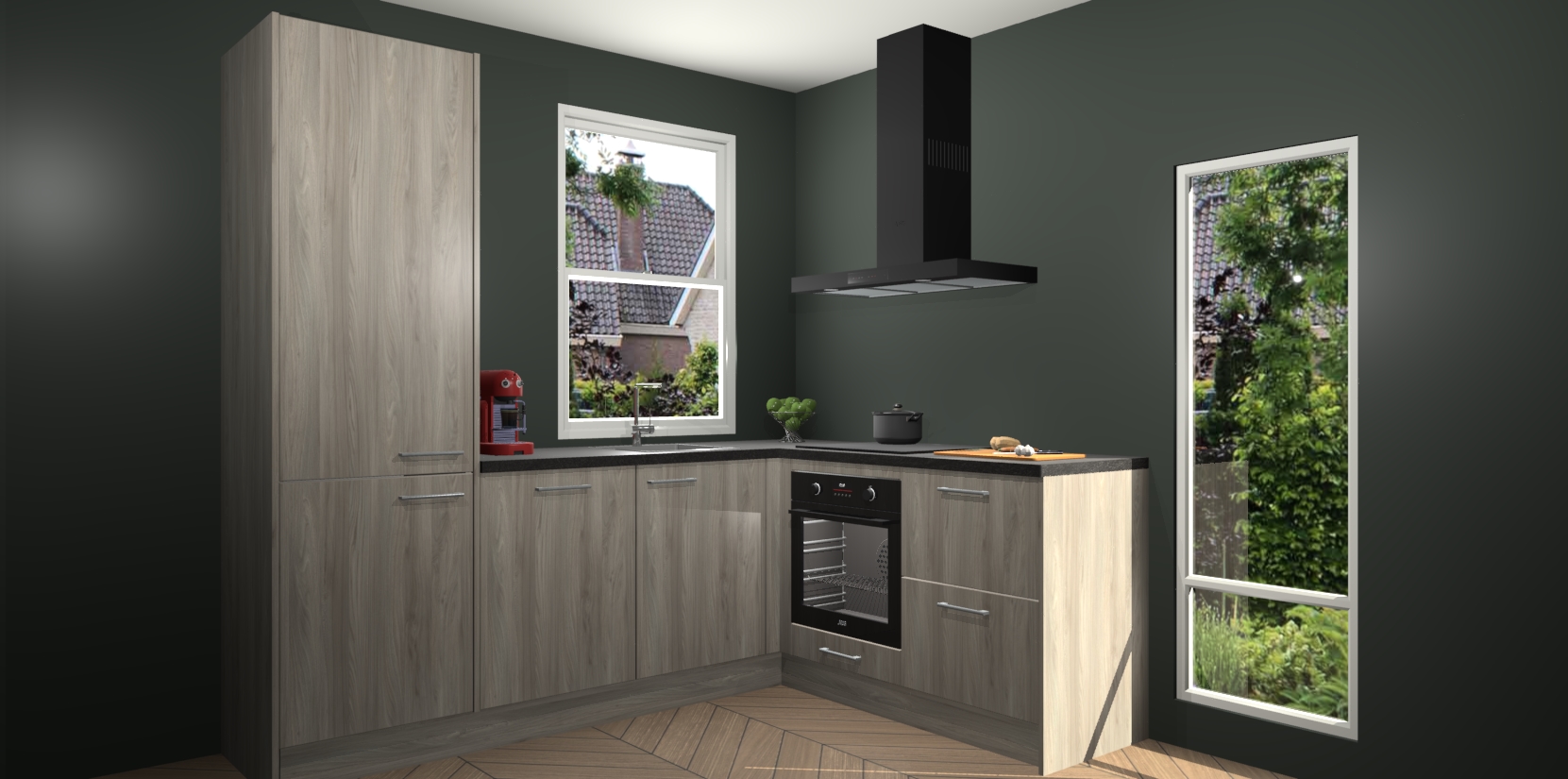 De prachtige Olm keuken Phuket is de perfecte keuze als u op zoek bent naar een moderne hoekkeuken met alle luxe en comfort die u kunt verwachten! De uitstraling in het houtlook-design draagt bij aan de warme sfeer die u nu al voelt wanneer u er naar kijkt. Heeft u genoeg van ouderwetse keukens? Probeer dan direct deze moderne, mooie hoekkeukens en laat iedereen verbluft achter!