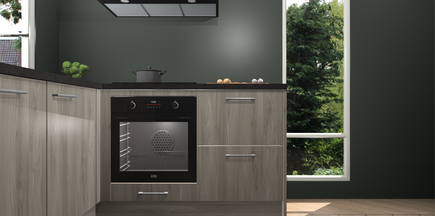 De Olm keuken Phuket heeft alles wat u maar kunt wensen. Niet alleen zijn er softclose deuren, maar ook 5 ingebouwde apparaten: een oven, inductiekookplaat, afzuigkap, vaatwasser en koelkast - waarbij u later gemakkelijk naar het AEG merk, van inductiekookplaat naar kookplaat met geïntegreerde afzuiging of van oven naar combimagnetron kunt upgraden. Dat alles tegen een vast laag tarief! Bovendien geeft de Olm keuken Phuket supersnelle levering van 7 weken. Echt iets voor u als u er niet op wilt wachten om het resultaat te zien in eigen keuken!