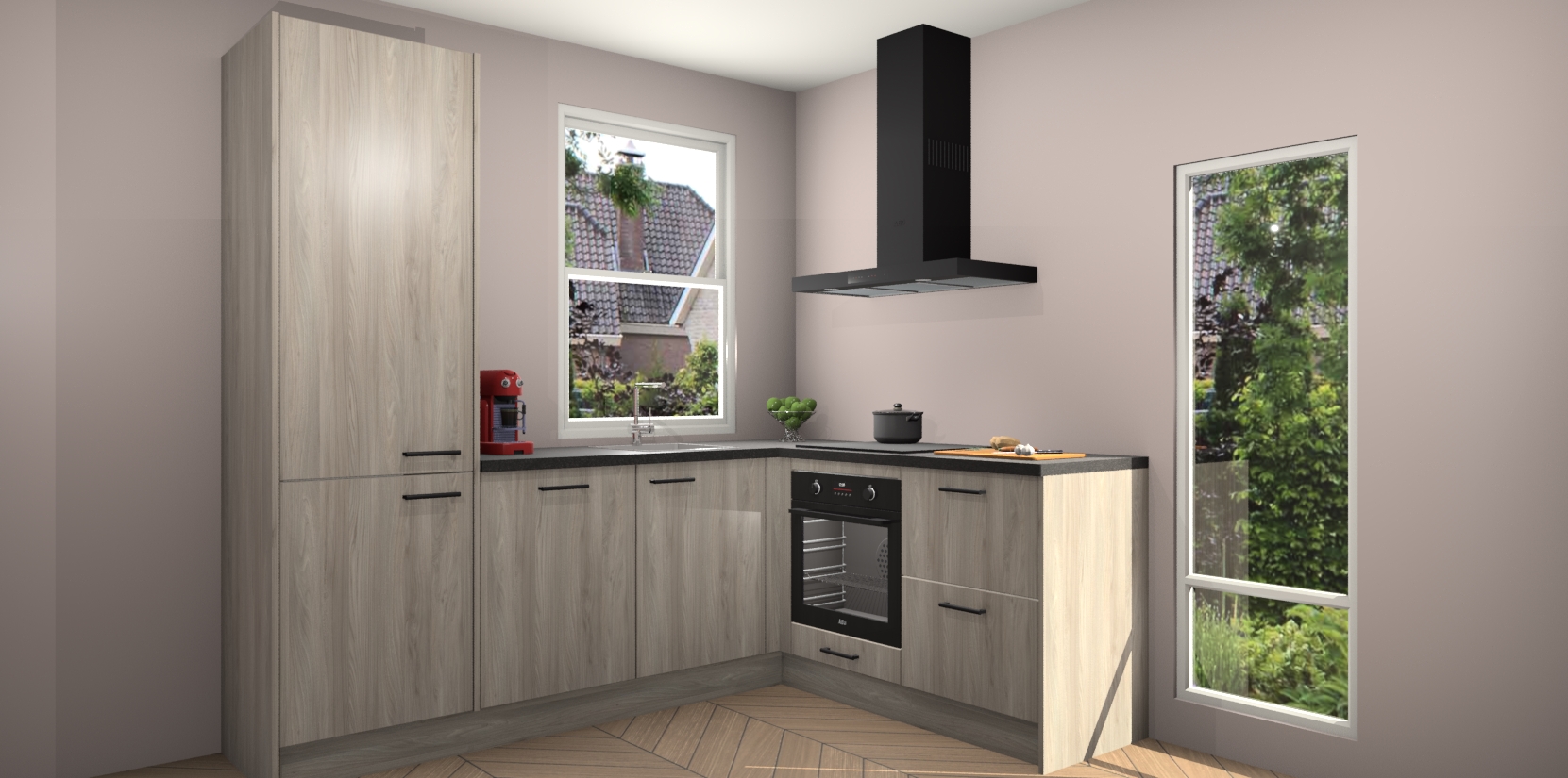 De prachtige Olm keuken Phuket is de perfecte keuze als u op zoek bent naar een moderne hoekkeuken met alle luxe en comfort die u kunt verwachten! De uitstraling in het houtlook-design draagt bij aan de warme sfeer die u nu al voelt wanneer u er naar kijkt. Heeft u genoeg van ouderwetse keukens? Probeer dan direct deze moderne, mooie hoekkeukens en laat iedereen verbluft achter!