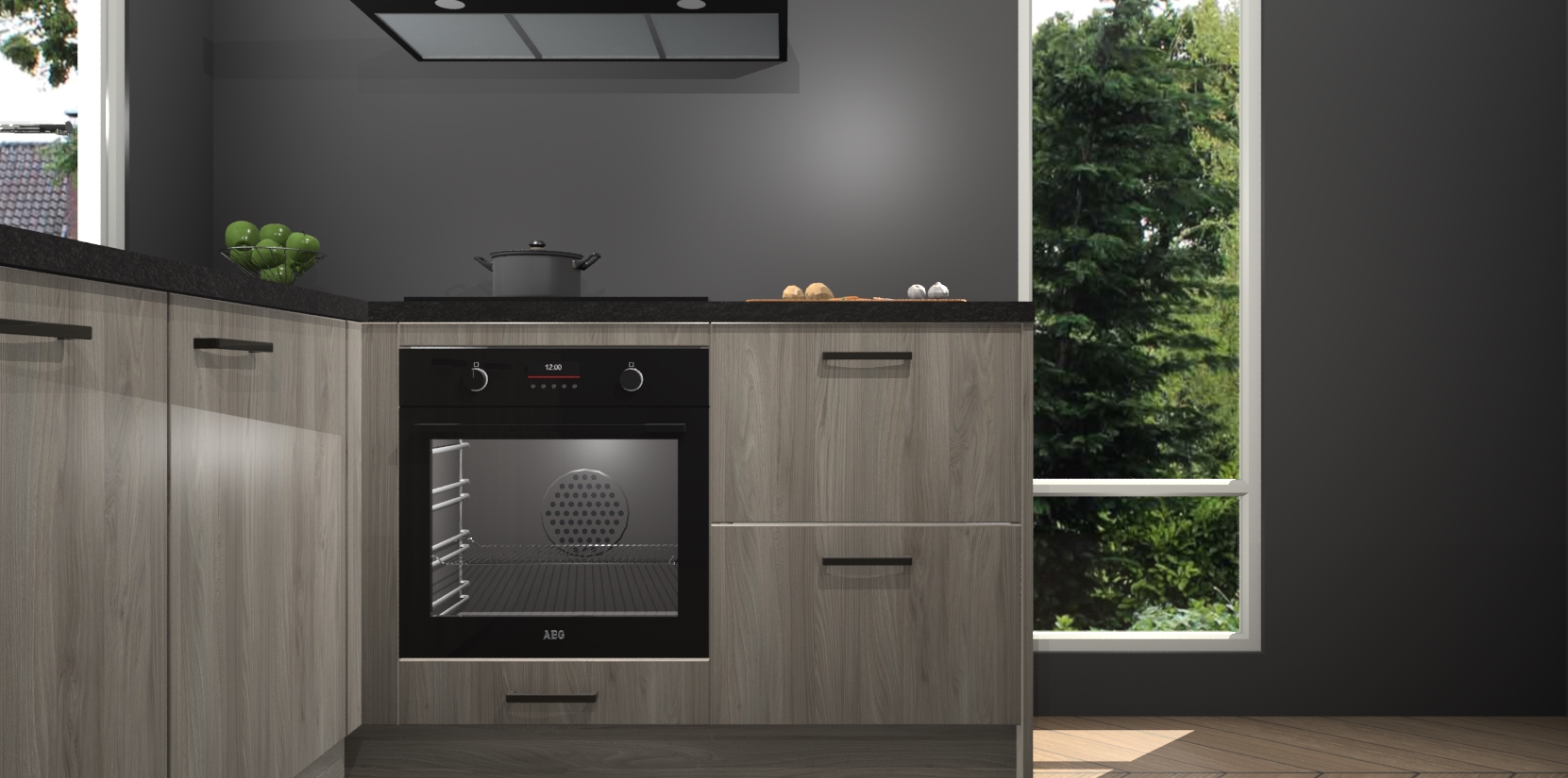 De Olm keuken Phuket heeft alles wat u maar kunt wensen. Niet alleen zijn er softclose deuren, maar ook 5 ingebouwde apparaten: een oven, inductiekookplaat, afzuigkap, vaatwasser en koelkast - waarbij u later gemakkelijk naar het AEG merk, van inductiekookplaat naar kookplaat met geïntegreerde afzuiging of van oven naar combimagnetron kunt upgraden. Dat alles tegen een vast laag tarief! Bovendien geeft de Olm keuken Phuket supersnelle levering van 7 weken. Echt iets voor u als u er niet op wilt wachten om het resultaat te zien in eigen keuken!