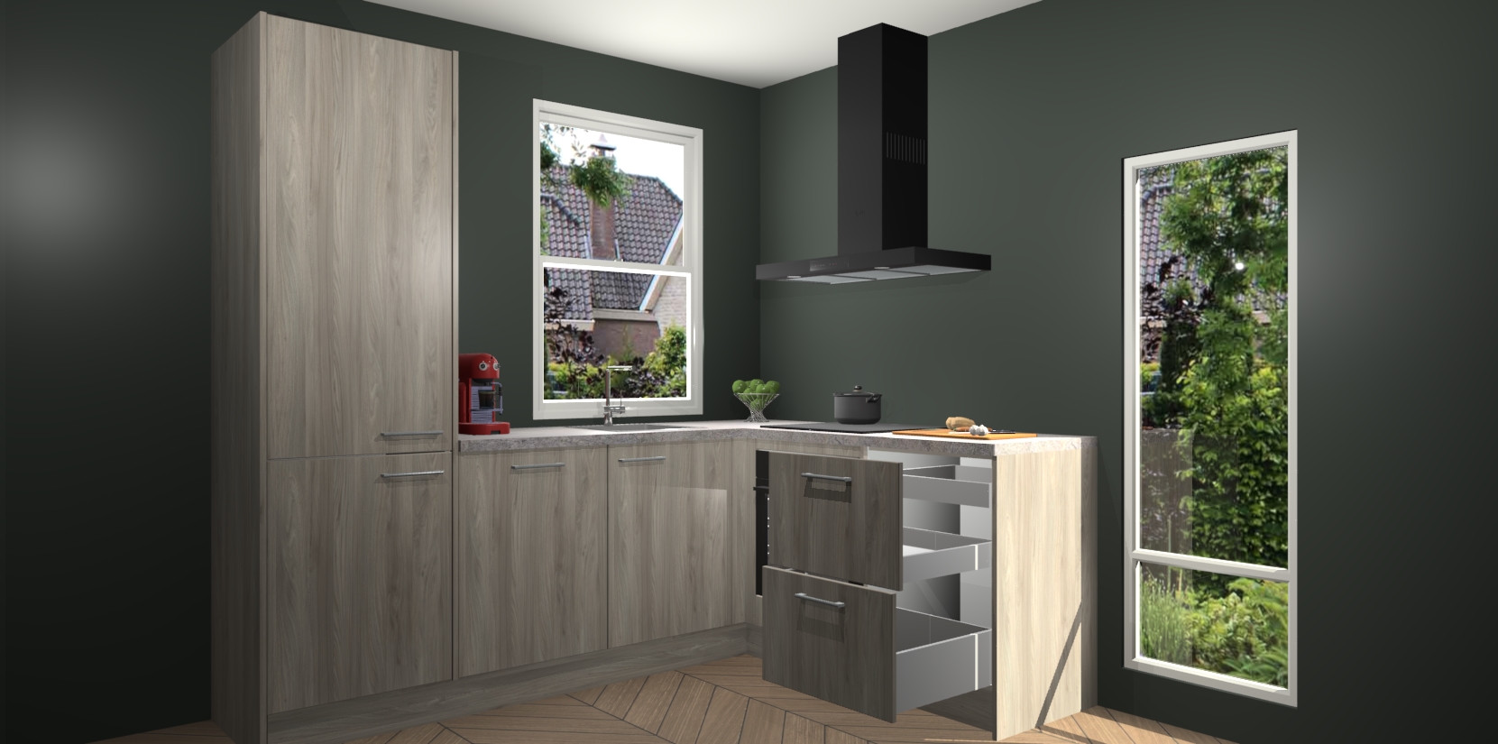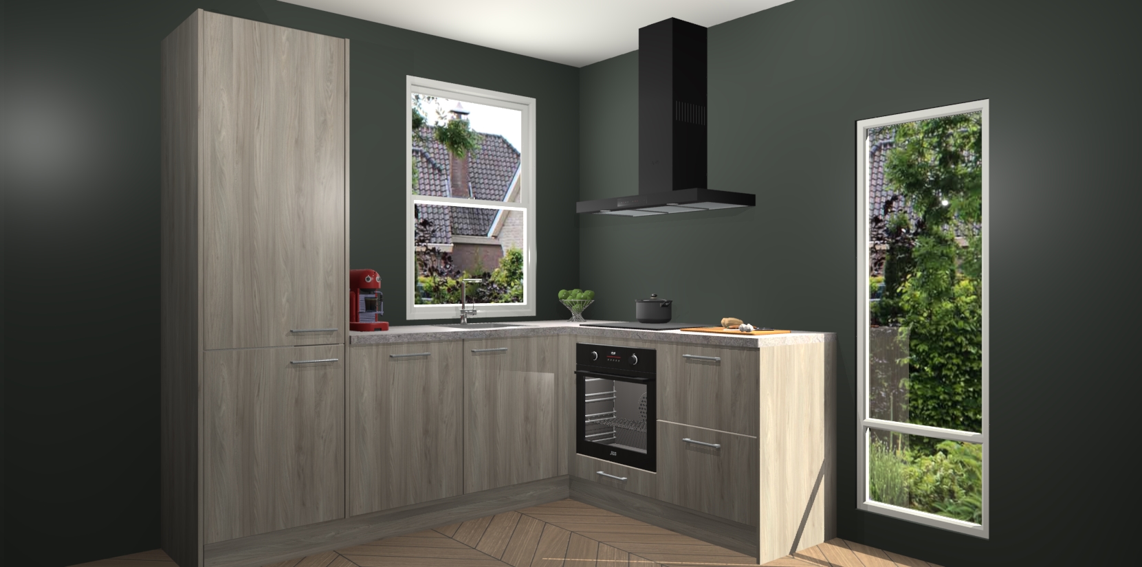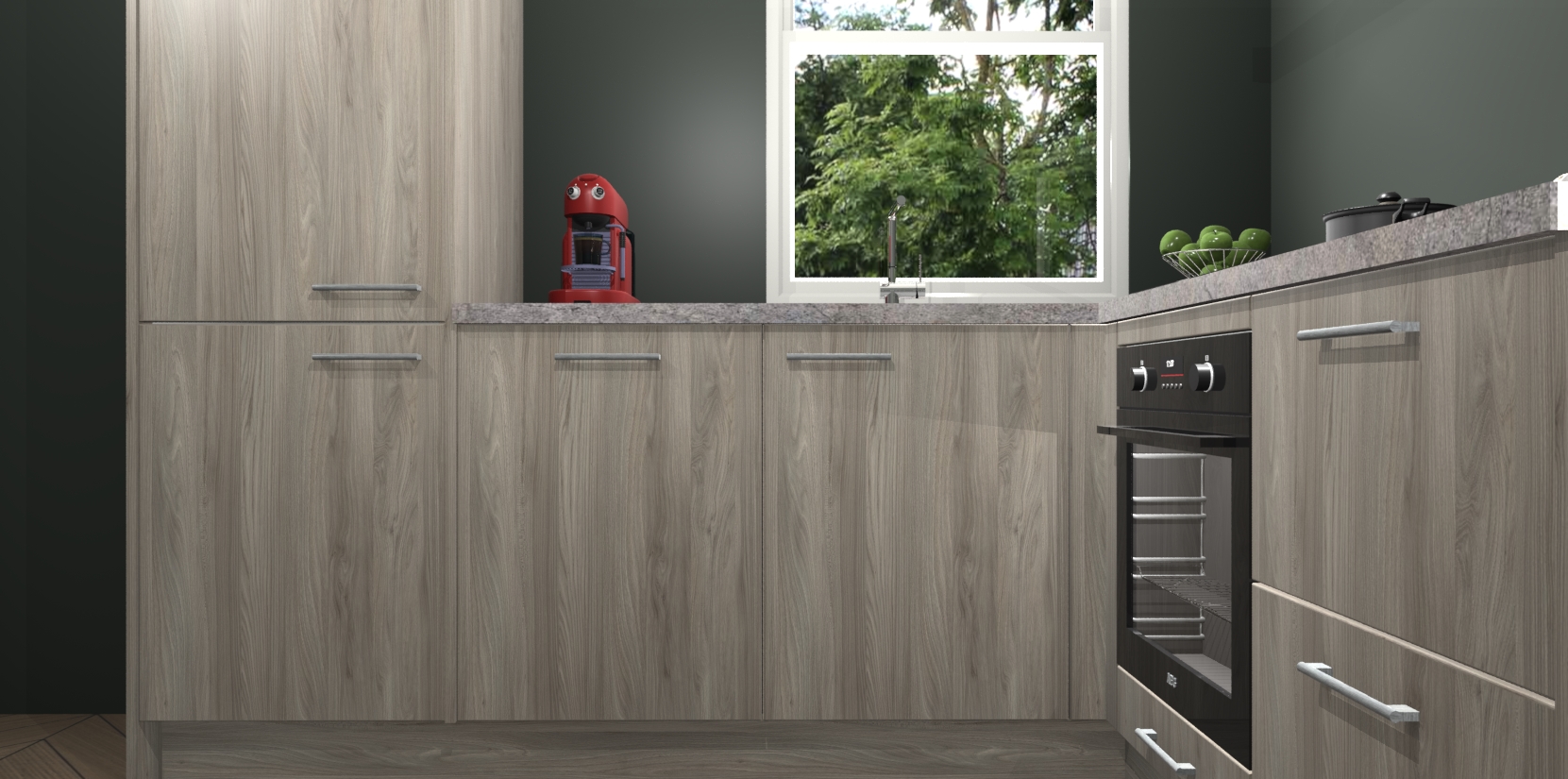 De prachtige Olm keuken Phuket is de perfecte keuze als u op zoek bent naar een moderne hoekkeuken met alle luxe en comfort die u kunt verwachten! De uitstraling in het houtlook-design draagt bij aan de warme sfeer die u nu al voelt wanneer u er naar kijkt. Heeft u genoeg van ouderwetse keukens? Probeer dan direct deze moderne, mooie hoekkeukens en laat iedereen verbluft achter!