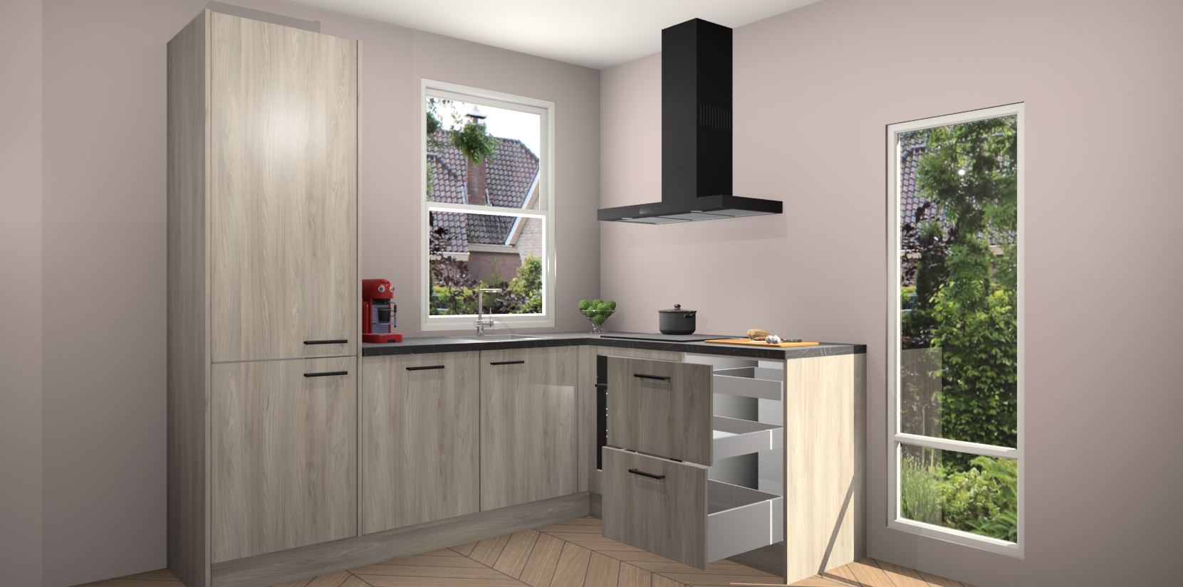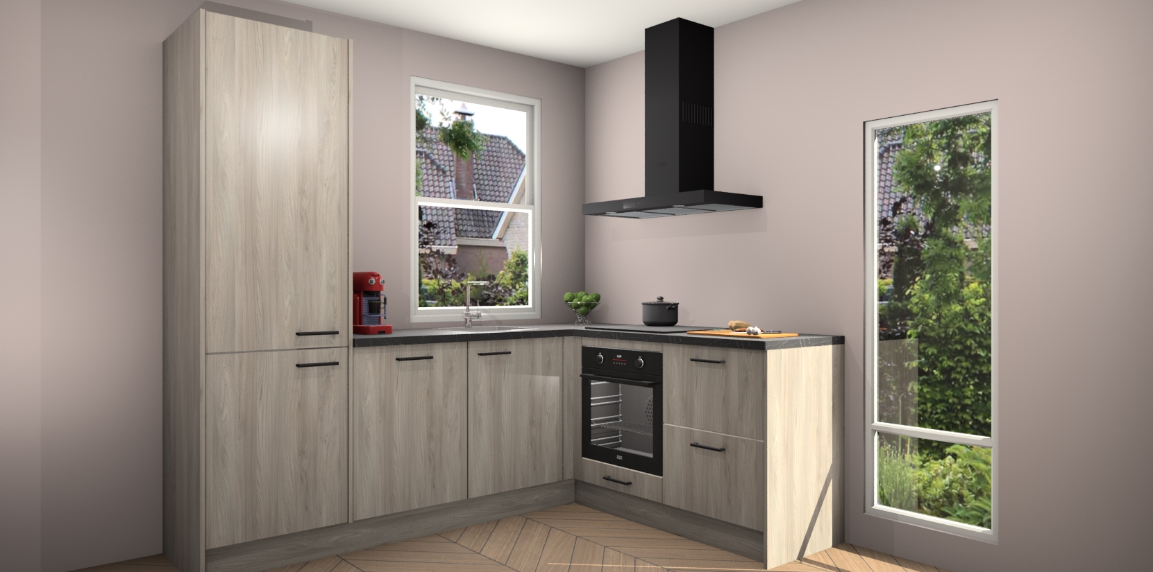 De prachtige Olm keuken Phuket is de perfecte keuze als u op zoek bent naar een moderne hoekkeuken met alle luxe en comfort die u kunt verwachten! De uitstraling in het houtlook-design draagt bij aan de warme sfeer die u nu al voelt wanneer u er naar kijkt. Heeft u genoeg van ouderwetse keukens? Probeer dan direct deze moderne, mooie hoekkeukens en laat iedereen verbluft achter!