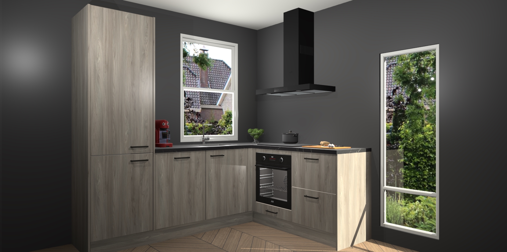 De prachtige Olm keuken Phuket is de perfecte keuze als u op zoek bent naar een moderne hoekkeuken met alle luxe en comfort die u kunt verwachten! De uitstraling in het houtlook-design draagt bij aan de warme sfeer die u nu al voelt wanneer u er naar kijkt. Heeft u genoeg van ouderwetse keukens? Probeer dan direct deze moderne, mooie hoekkeukens en laat iedereen verbluft achter!