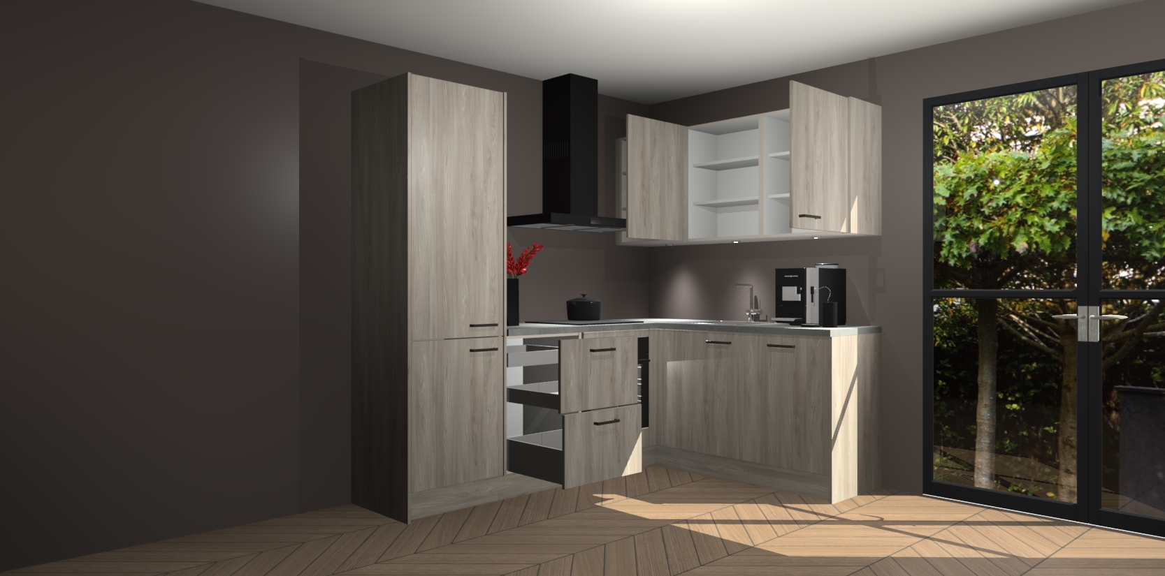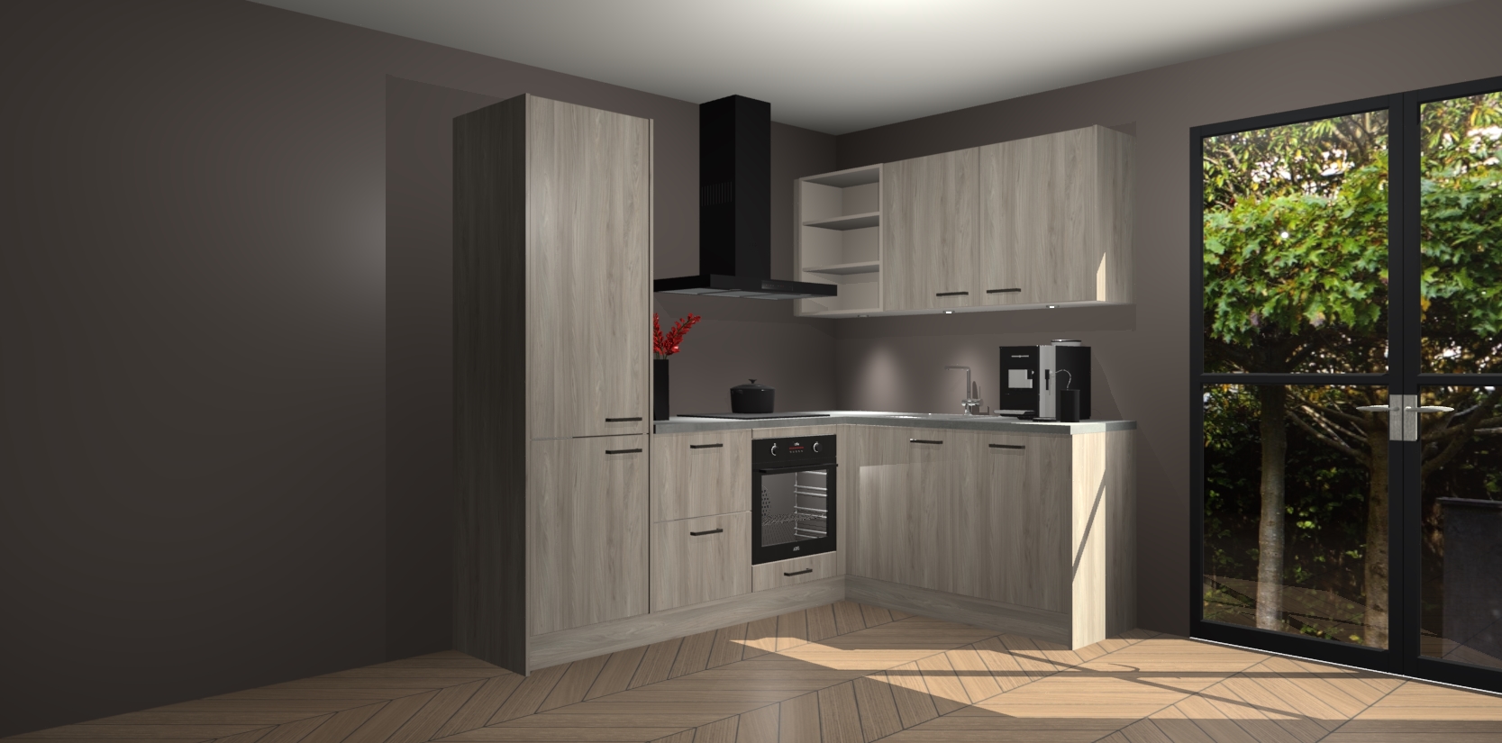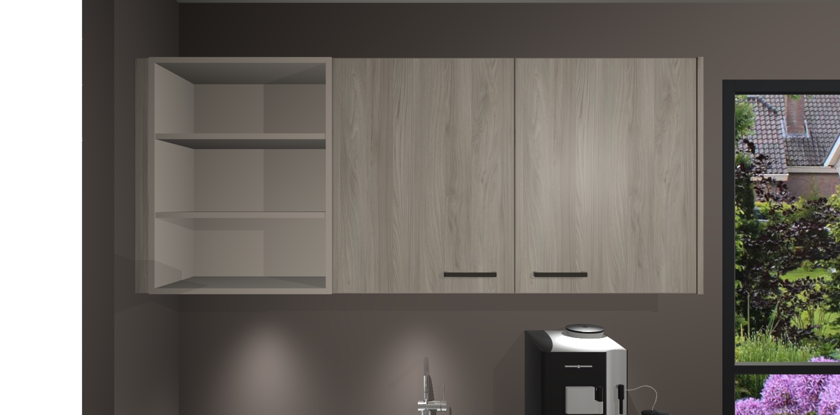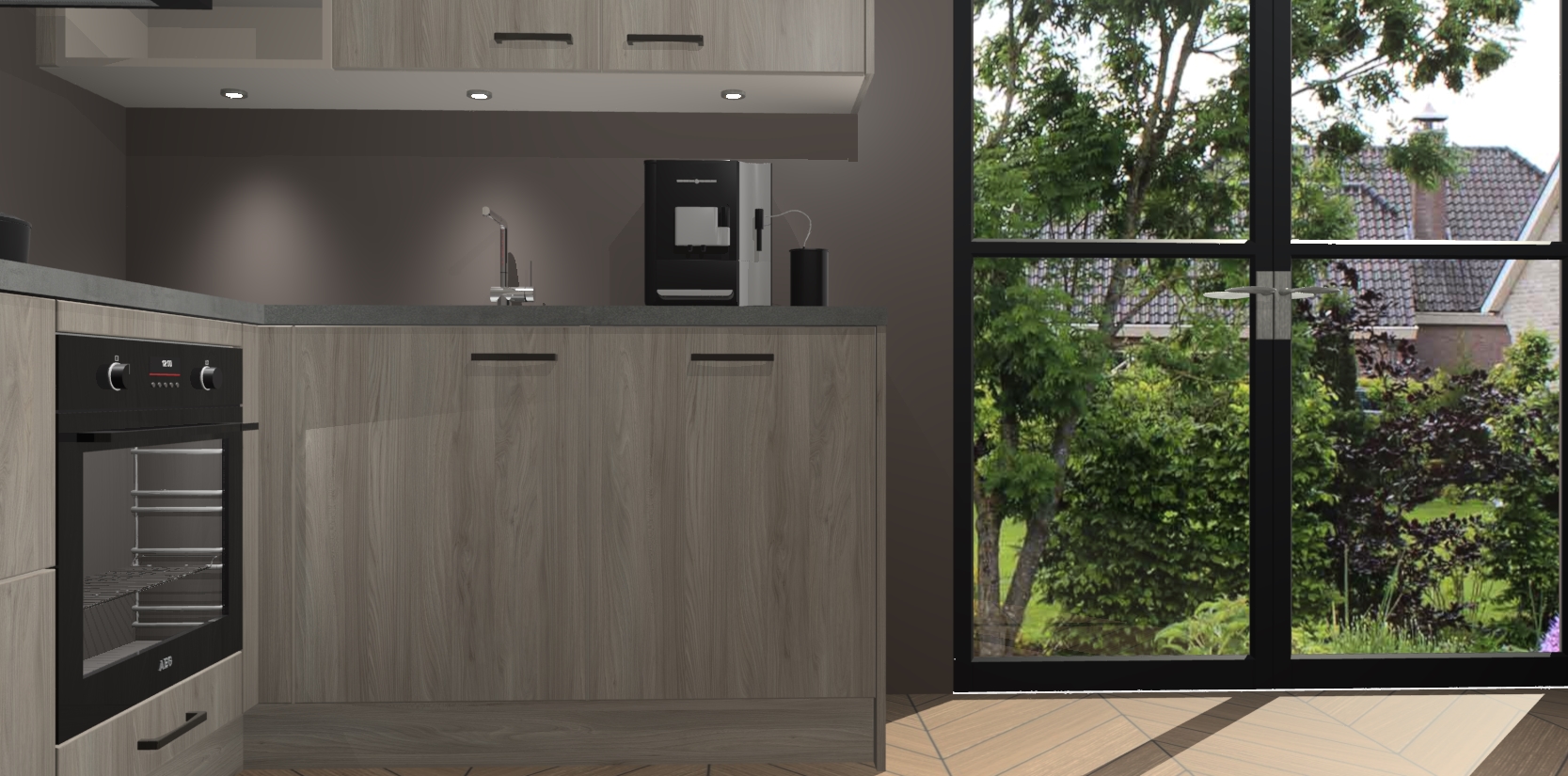 Wauw, dit is de Olm keuken Pilsen! U kunt gerust zeggen dat u elegantie combineert met functionaliteit met deze keuken. Met een modern en chique ontwerp is de keuken precies wat u nodig heeft om uw ruimte te verfraaien. De binnenzijde van de kasten is in dezelfde donkere kleur als de buitenzijde voor een uniforme look, compleet met softclose-kasten die stil sluiten.