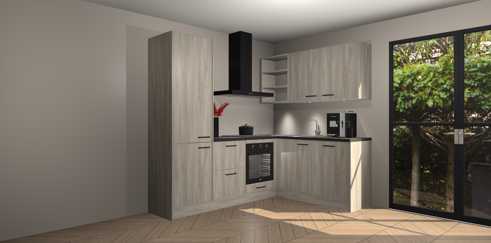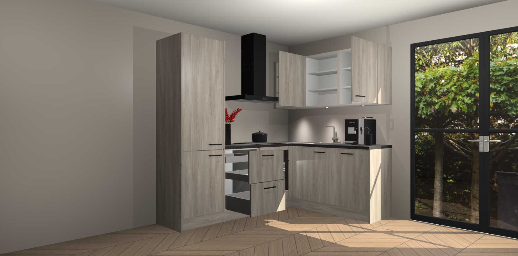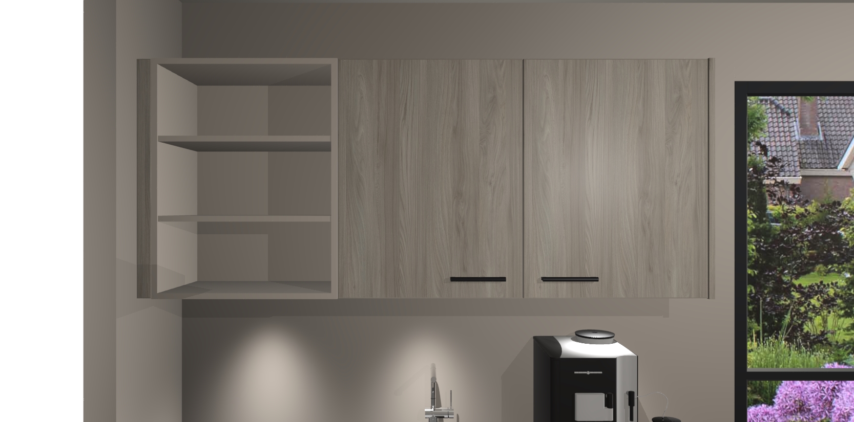 Wauw, dit is de Olm keuken Pilsen! U kunt gerust zeggen dat u elegantie combineert met functionaliteit met deze keuken. Met een modern en chique ontwerp is de keuken precies wat u nodig heeft om uw ruimte te verfraaien. De binnenzijde van de kasten is in dezelfde donkere kleur als de buitenzijde voor een uniforme look, compleet met softclose-kasten die stil sluiten.