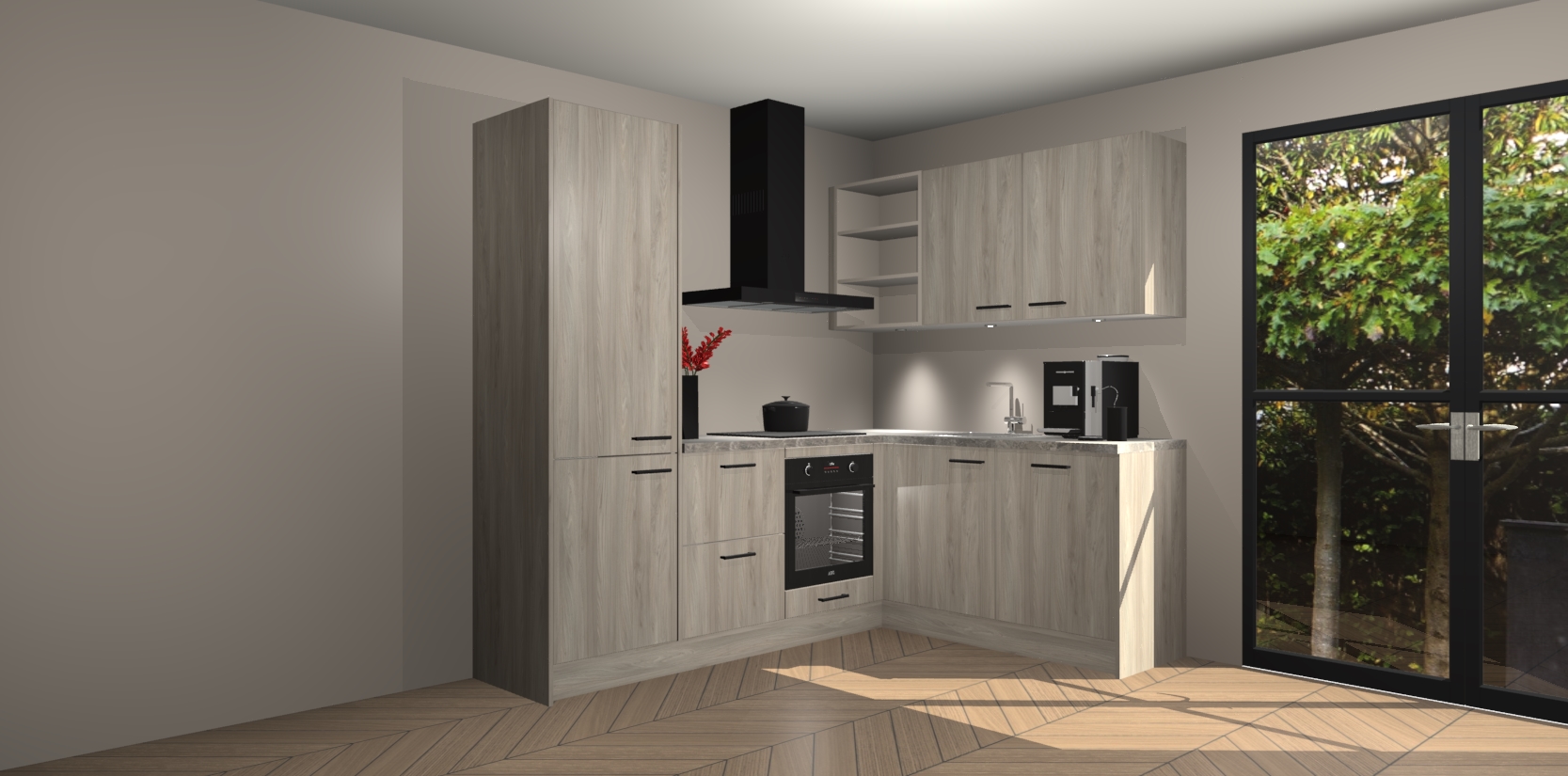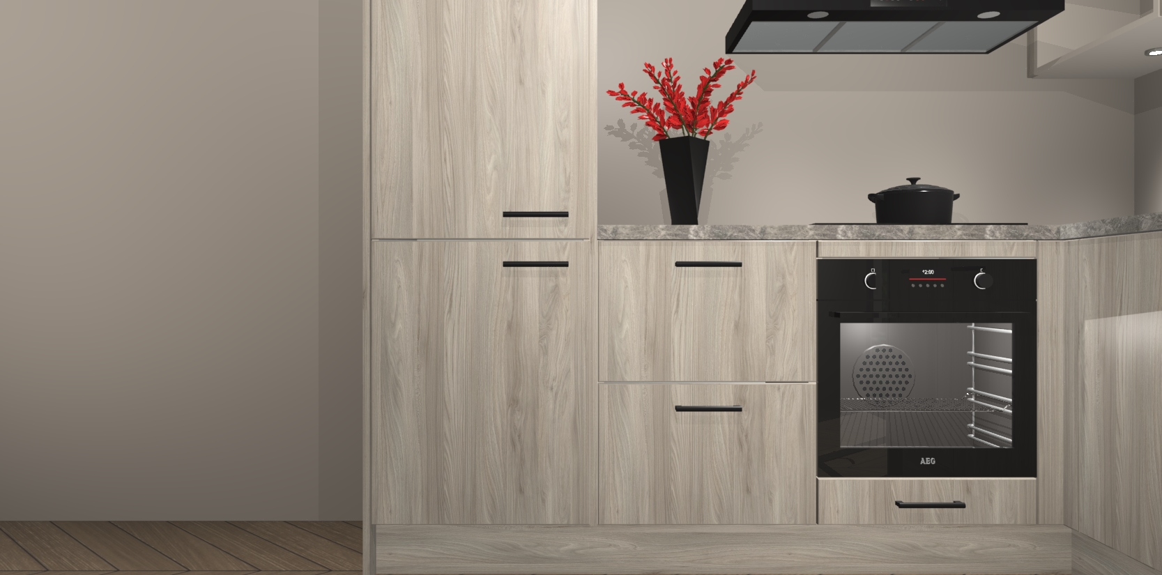 Om dingen nog beter te maken, zijn er allerlei extra's ingebouwd. We hebben 5 ingebouwde apparaten standaard bij deze keuken inbegrepen. Een oven, inductiekookplaat, afzuigkap, vaatwasser en koelkast. Deze kan u upgraden naar AEG na bestelling. Bovendien bent u verzekerd van een laag vast bedrag voor ons alom geliefde product.