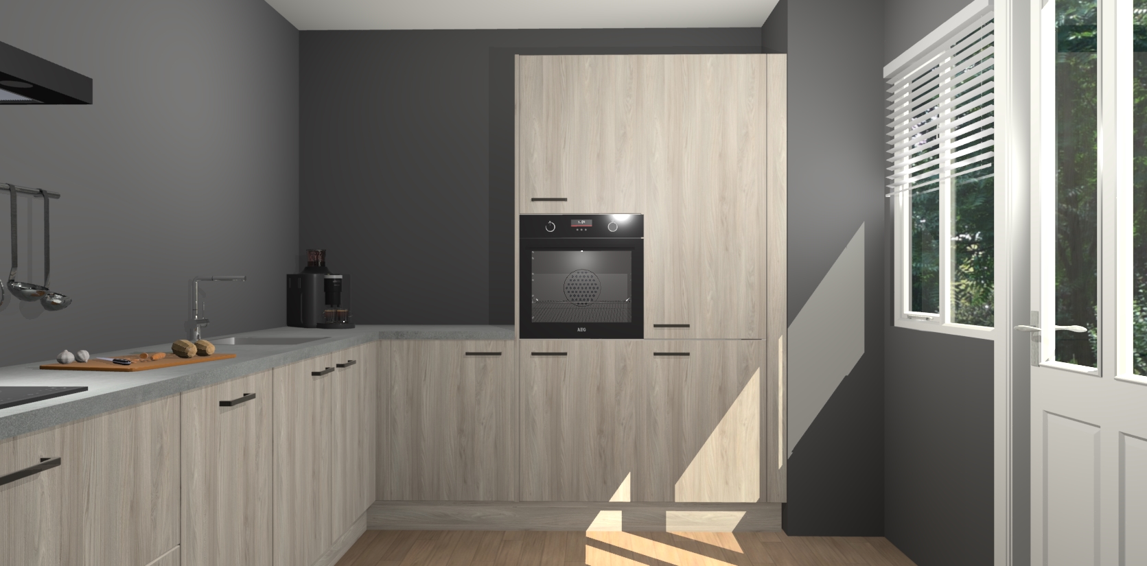 Welkom bij de Olm keuken Portland. Deze prachtige keuken zal de komende jaren het middelpunt van de belangstelling in uw huis zijn. Uitgerust met vijf inbouwapparaten komt u nooit kookgereedschap tekort. Bovendien geeft de warme houtlook elke ruimte een uitnodigende en tijdloze uitstraling.