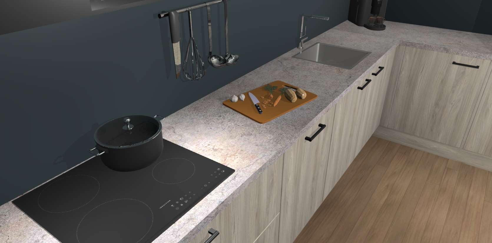 - Bij een hoekwerkblad zijn de hoeken in gevreesd en op maat gemaakt