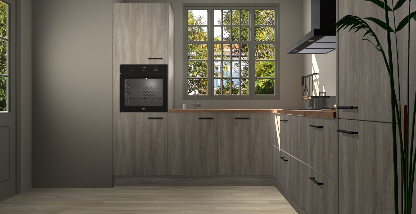 Met een modern, tijdloos design en ruime opslagruimte, zult u zich in no-time thuis voelen in uw nieuwe keuken. Uw leven wordt eenvoudiger met de soft-close deuren die voor het ultieme stille comfort zorgen - geen geluid dat u stoort terwijl u kookt. Ook is de keuken voorzien van 5 ingebouwde apparaten: een oven, inductie kookplaat, afzuigkap, vaatwasser en koelkast. Deze kunnen gemakkelijk na bestelling worden bijgewerkt naar AEG - waardoor uw luxe ervaring compleet is.