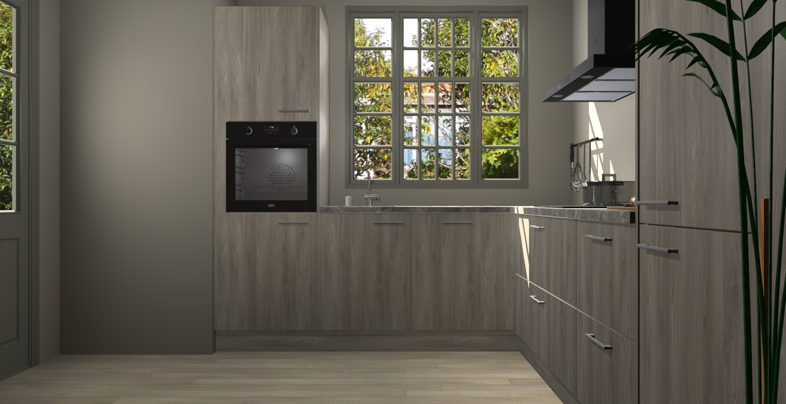Met een modern, tijdloos design en ruime opslagruimte, zult u zich in no-time thuis voelen in uw nieuwe keuken. Uw leven wordt eenvoudiger met de soft-close deuren die voor het ultieme stille comfort zorgen - geen geluid dat u stoort terwijl u kookt. Ook is de keuken voorzien van 5 ingebouwde apparaten: een oven, inductie kookplaat, afzuigkap, vaatwasser en koelkast. Deze kunnen gemakkelijk na bestelling worden bijgewerkt naar AEG - waardoor uw luxe ervaring compleet is.