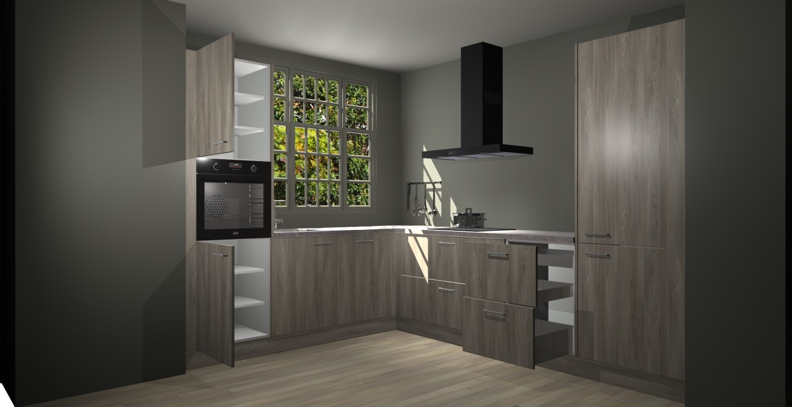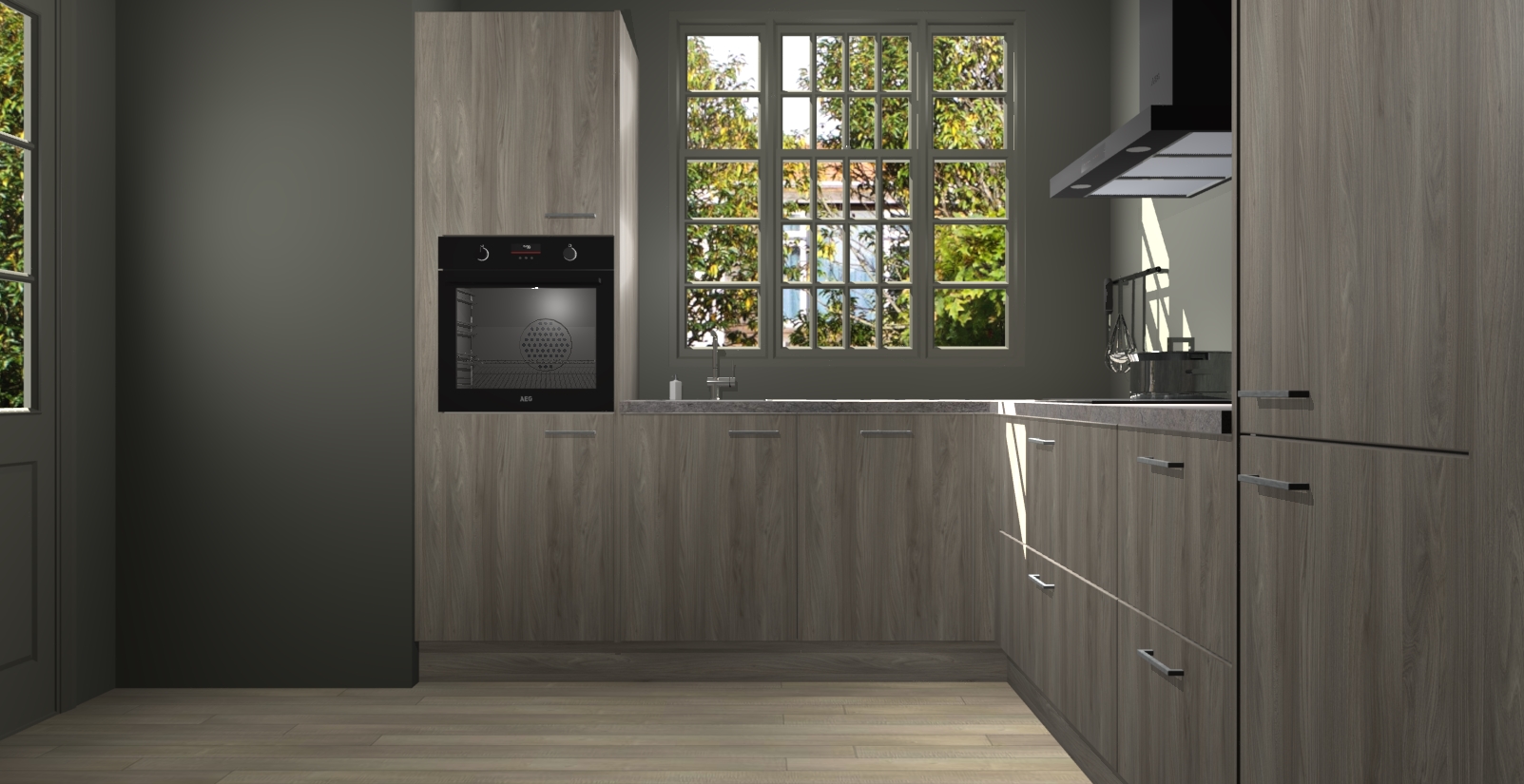 Met een modern, tijdloos design en ruime opslagruimte, zult u zich in no-time thuis voelen in uw nieuwe keuken. Uw leven wordt eenvoudiger met de soft-close deuren die voor het ultieme stille comfort zorgen - geen geluid dat u stoort terwijl u kookt. Ook is de keuken voorzien van 5 ingebouwde apparaten: een oven, inductie kookplaat, afzuigkap, vaatwasser en koelkast. Deze kunnen gemakkelijk na bestelling worden bijgewerkt naar AEG - waardoor uw luxe ervaring compleet is.