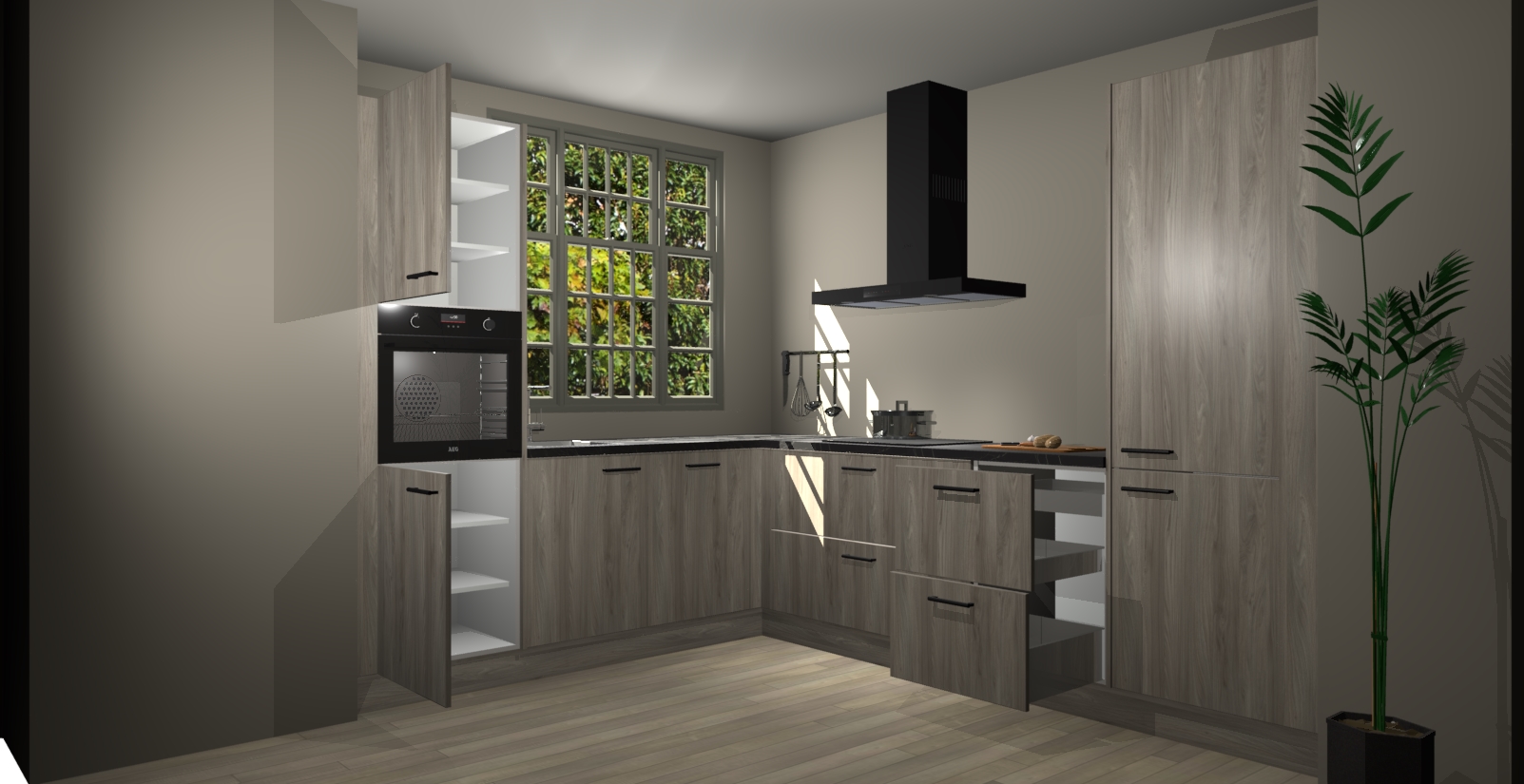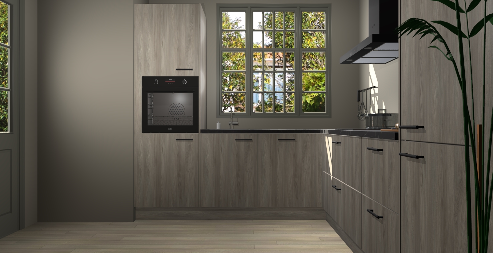Met een modern, tijdloos design en ruime opslagruimte, zult u zich in no-time thuis voelen in uw nieuwe keuken. Uw leven wordt eenvoudiger met de soft-close deuren die voor het ultieme stille comfort zorgen - geen geluid dat u stoort terwijl u kookt. Ook is de keuken voorzien van 5 ingebouwde apparaten: een oven, inductie kookplaat, afzuigkap, vaatwasser en koelkast. Deze kunnen gemakkelijk na bestelling worden bijgewerkt naar AEG - waardoor uw luxe ervaring compleet is.