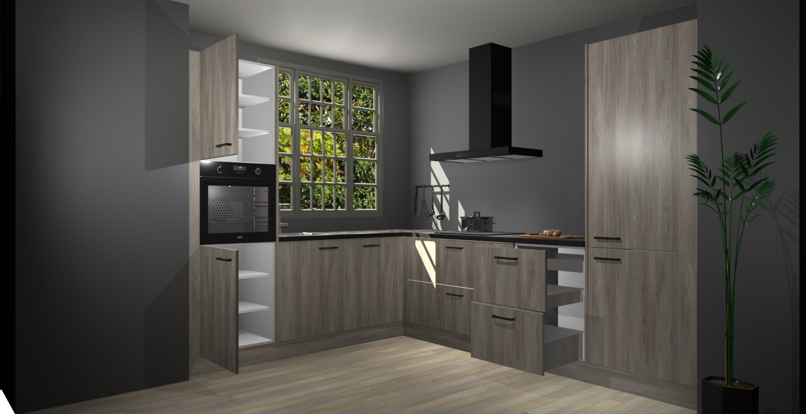 Met een modern, tijdloos design en ruime opslagruimte, zult u zich in no-time thuis voelen in uw nieuwe keuken. Uw leven wordt eenvoudiger met de soft-close deuren die voor het ultieme stille comfort zorgen - geen geluid dat u stoort terwijl u kookt. Ook is de keuken voorzien van 5 ingebouwde apparaten: een oven, inductie kookplaat, afzuigkap, vaatwasser en koelkast. Deze kunnen gemakkelijk na bestelling worden bijgewerkt naar AEG - waardoor uw luxe ervaring compleet is.