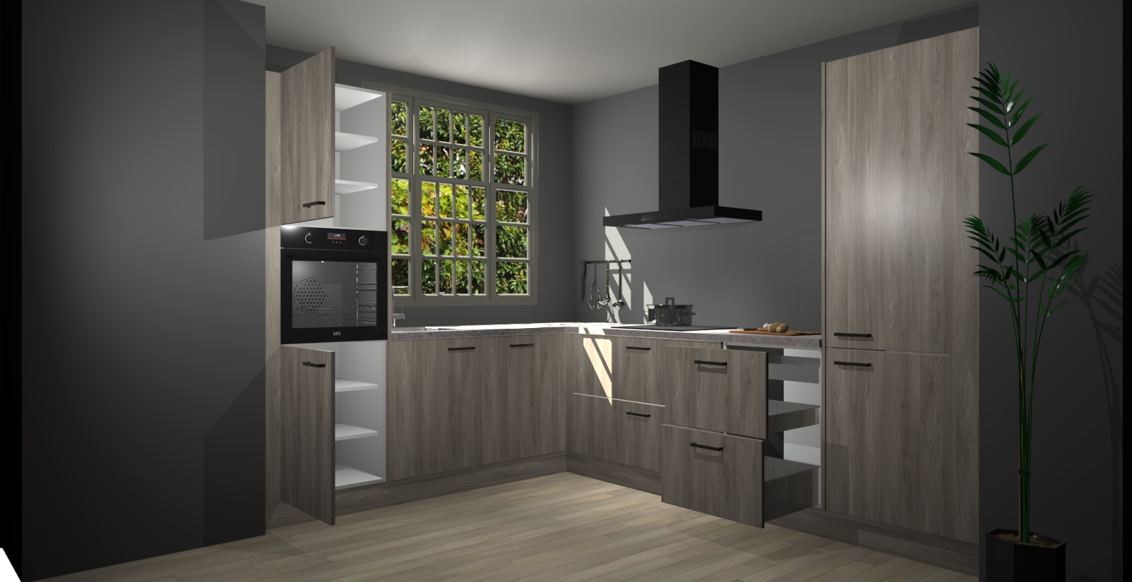 Met een modern, tijdloos design en ruime opslagruimte, zult u zich in no-time thuis voelen in uw nieuwe keuken. Uw leven wordt eenvoudiger met de soft-close deuren die voor het ultieme stille comfort zorgen - geen geluid dat u stoort terwijl u kookt. Ook is de keuken voorzien van 5 ingebouwde apparaten: een oven, inductie kookplaat, afzuigkap, vaatwasser en koelkast. Deze kunnen gemakkelijk na bestelling worden bijgewerkt naar AEG - waardoor uw luxe ervaring compleet is.