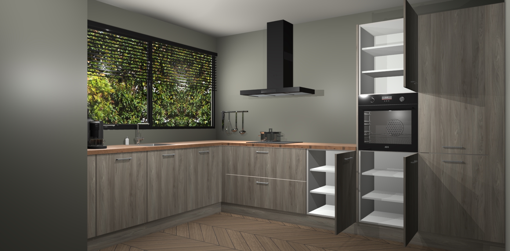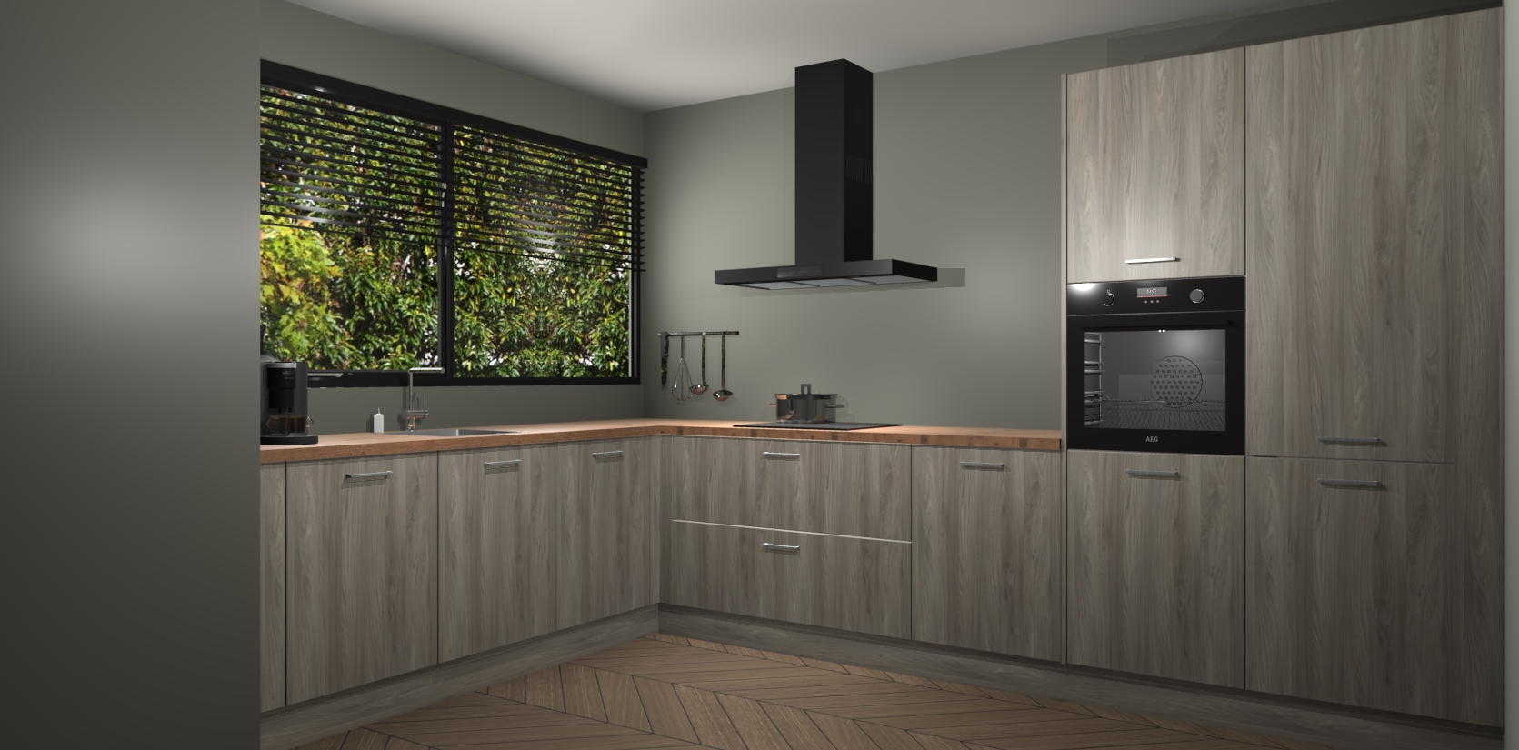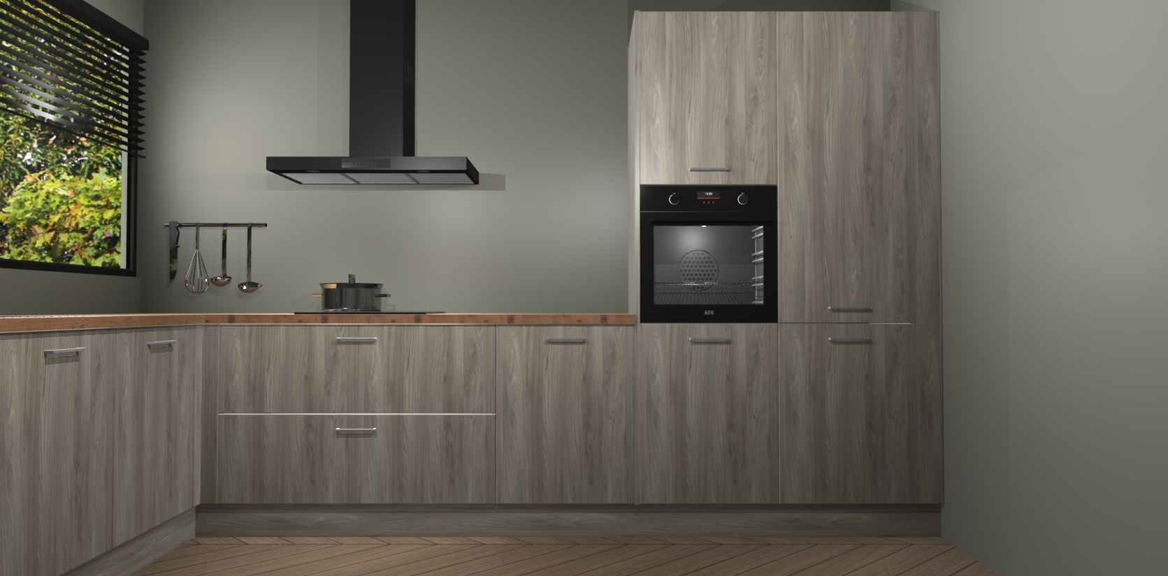 Met een modern, tijdloos design en ruime opslagruimte, zult u zich in no-time thuis voelen in uw nieuwe keuken. Uw leven wordt eenvoudiger met de soft-close deuren die voor het ultieme stille comfort zorgen - geen geluid dat u stoort terwijl u kookt. Ook is de keuken voorzien van 5 ingebouwde apparaten: een oven, inductie kookplaat, afzuigkap, vaatwasser en koelkast. Deze kunnen gemakkelijk na bestelling worden bijgewerkt naar AEG - waardoor uw luxe ervaring compleet is.