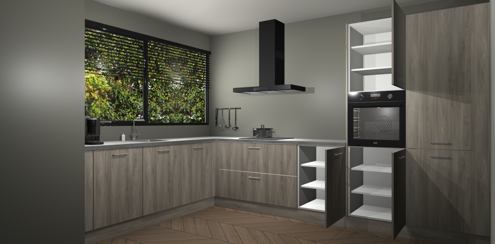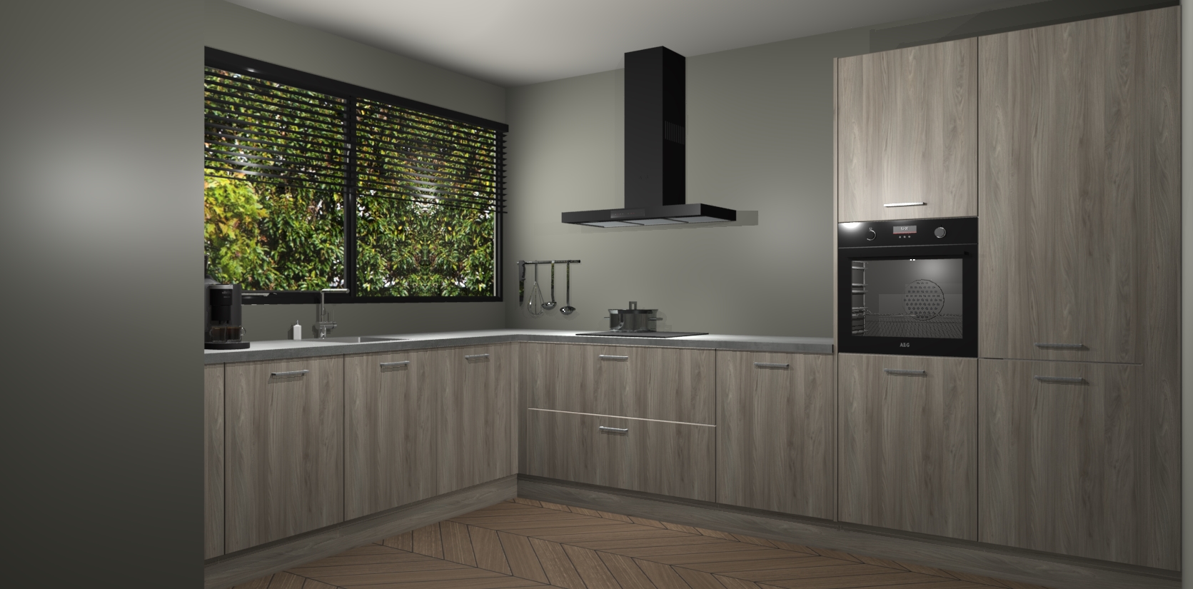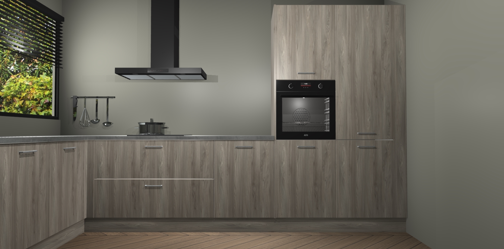 Met een modern, tijdloos design en ruime opslagruimte, zult u zich in no-time thuis voelen in uw nieuwe keuken. Uw leven wordt eenvoudiger met de soft-close deuren die voor het ultieme stille comfort zorgen - geen geluid dat u stoort terwijl u kookt. Ook is de keuken voorzien van 5 ingebouwde apparaten: een oven, inductie kookplaat, afzuigkap, vaatwasser en koelkast. Deze kunnen gemakkelijk na bestelling worden bijgewerkt naar AEG - waardoor uw luxe ervaring compleet is.