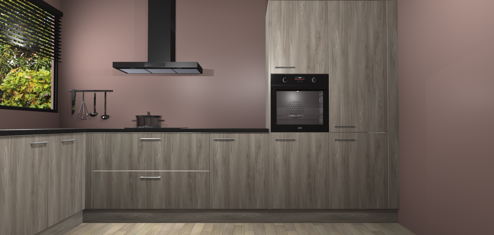 Met een modern, tijdloos design en ruime opslagruimte, zult u zich in no-time thuis voelen in uw nieuwe keuken. Uw leven wordt eenvoudiger met de soft-close deuren die voor het ultieme stille comfort zorgen - geen geluid dat u stoort terwijl u kookt. Ook is de keuken voorzien van 5 ingebouwde apparaten: een oven, inductie kookplaat, afzuigkap, vaatwasser en koelkast. Deze kunnen gemakkelijk na bestelling worden bijgewerkt naar AEG - waardoor uw luxe ervaring compleet is.