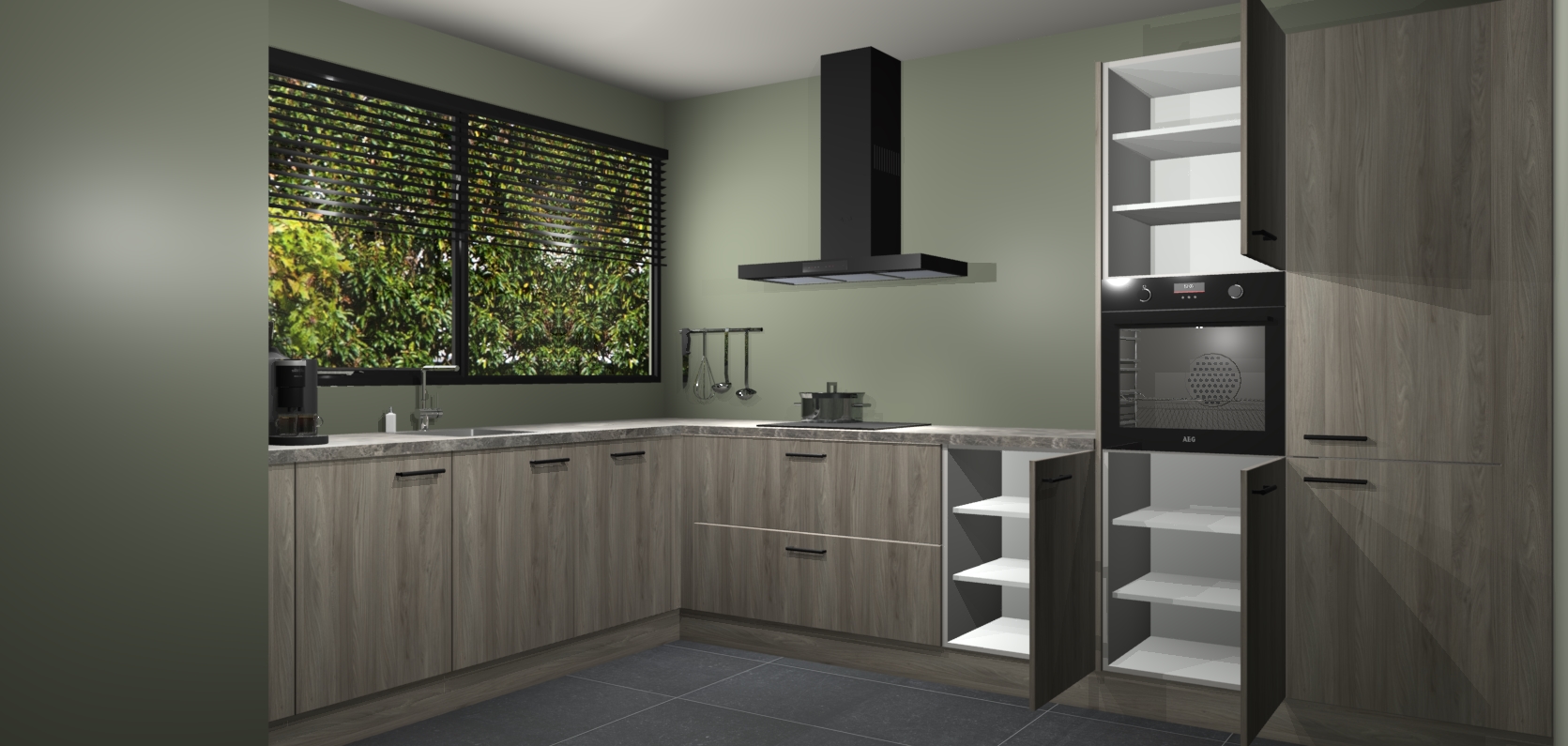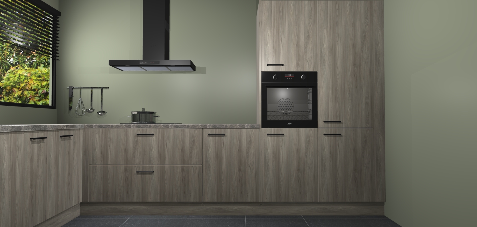 Met een modern, tijdloos design en ruime opslagruimte, zult u zich in no-time thuis voelen in uw nieuwe keuken. Uw leven wordt eenvoudiger met de soft-close deuren die voor het ultieme stille comfort zorgen - geen geluid dat u stoort terwijl u kookt. Ook is de keuken voorzien van 5 ingebouwde apparaten: een oven, inductie kookplaat, afzuigkap, vaatwasser en koelkast. Deze kunnen gemakkelijk na bestelling worden bijgewerkt naar AEG - waardoor uw luxe ervaring compleet is.