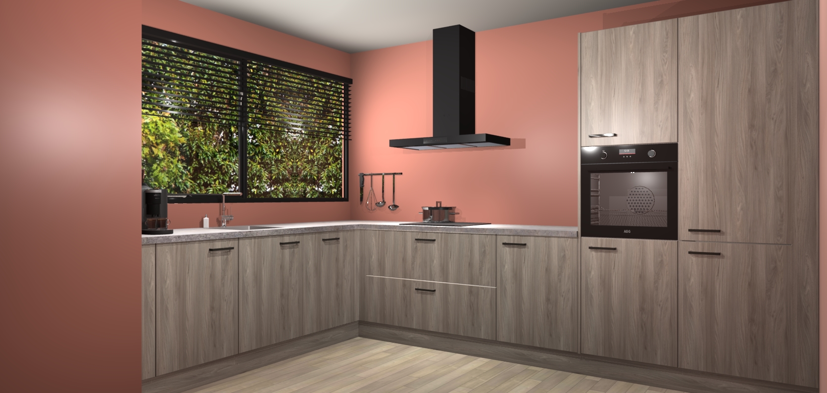 Met een modern, tijdloos design en ruime opslagruimte, zult u zich in no-time thuis voelen in uw nieuwe keuken. Uw leven wordt eenvoudiger met de soft-close deuren die voor het ultieme stille comfort zorgen - geen geluid dat u stoort terwijl u kookt. Ook is de keuken voorzien van 5 ingebouwde apparaten: een oven, inductie kookplaat, afzuigkap, vaatwasser en koelkast. Deze kunnen gemakkelijk na bestelling worden bijgewerkt naar AEG - waardoor uw luxe ervaring compleet is.