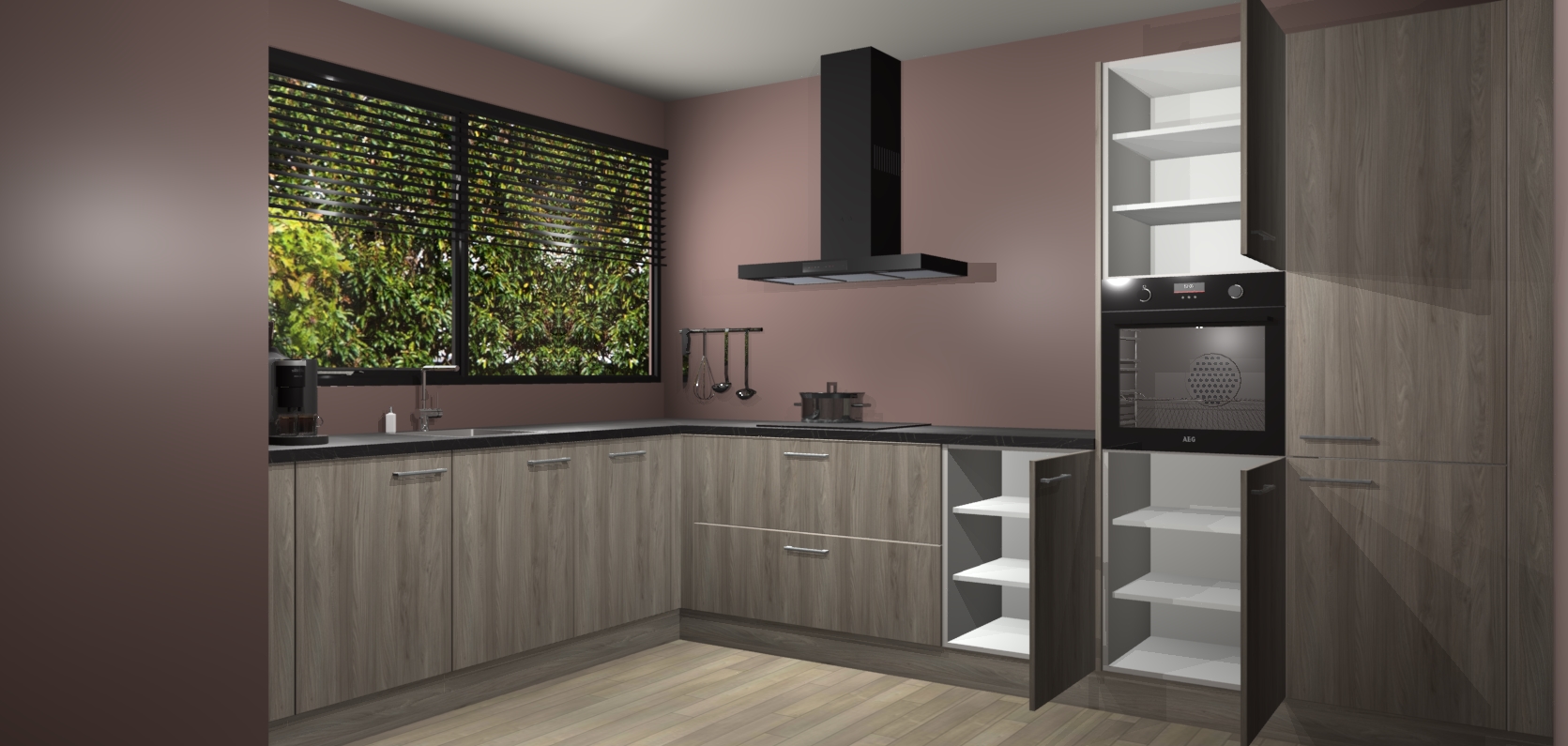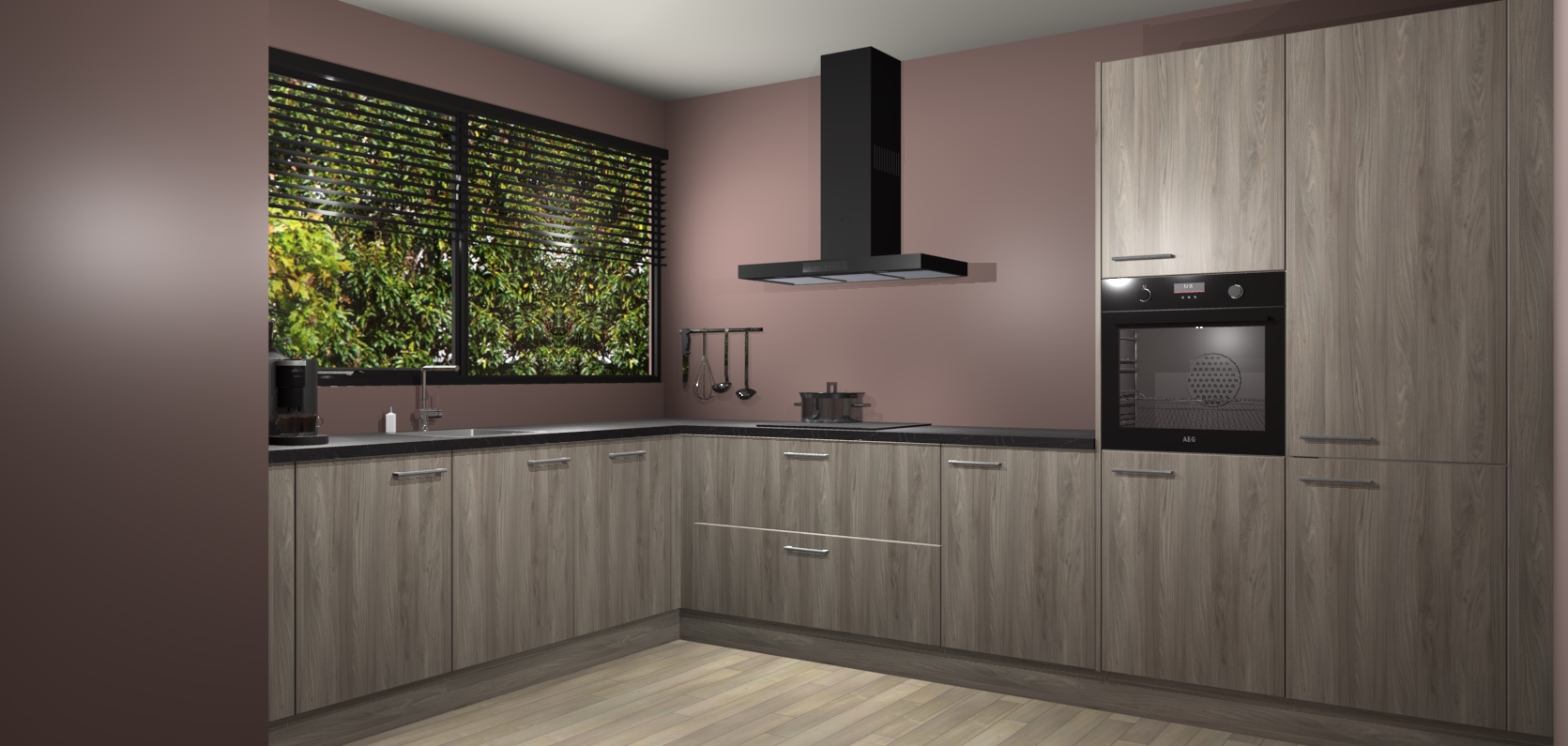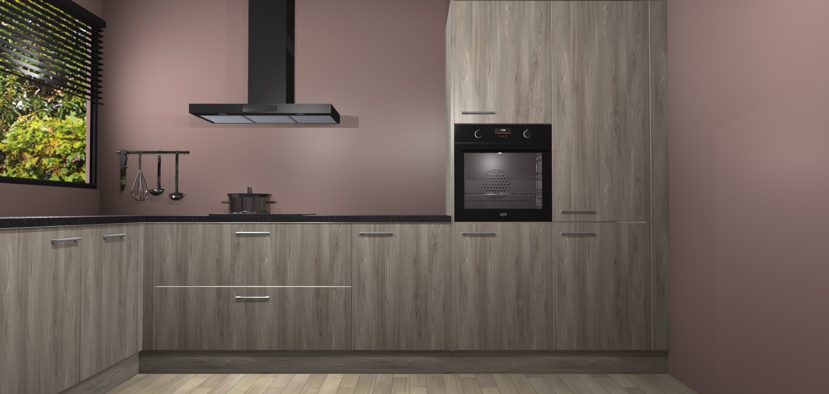 Met een modern, tijdloos design en ruime opslagruimte, zult u zich in no-time thuis voelen in uw nieuwe keuken. Uw leven wordt eenvoudiger met de soft-close deuren die voor het ultieme stille comfort zorgen - geen geluid dat u stoort terwijl u kookt. Ook is de keuken voorzien van 5 ingebouwde apparaten: een oven, inductie kookplaat, afzuigkap, vaatwasser en koelkast. Deze kunnen gemakkelijk na bestelling worden bijgewerkt naar AEG - waardoor uw luxe ervaring compleet is.