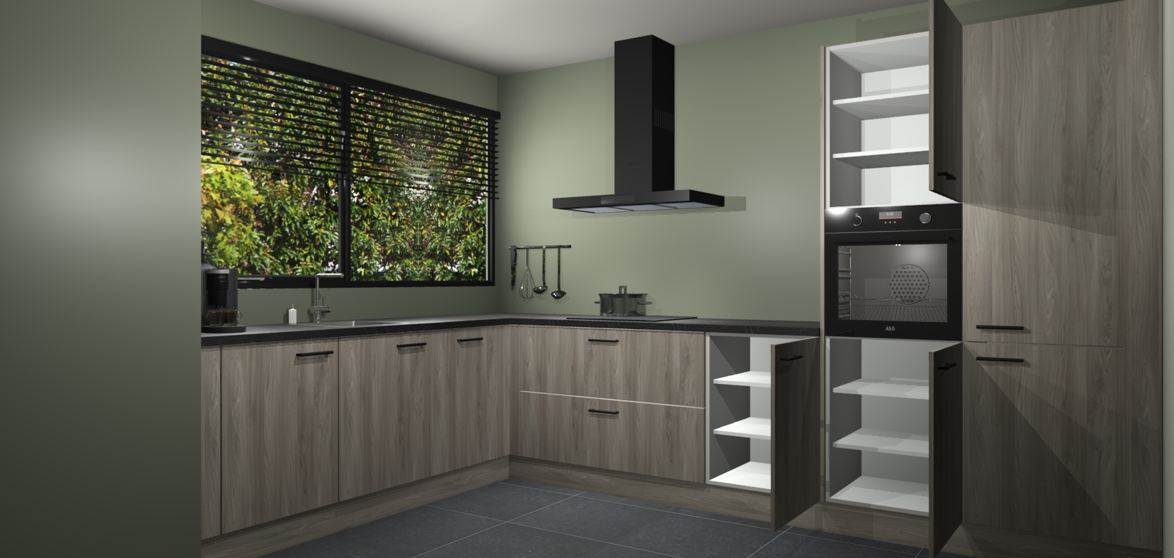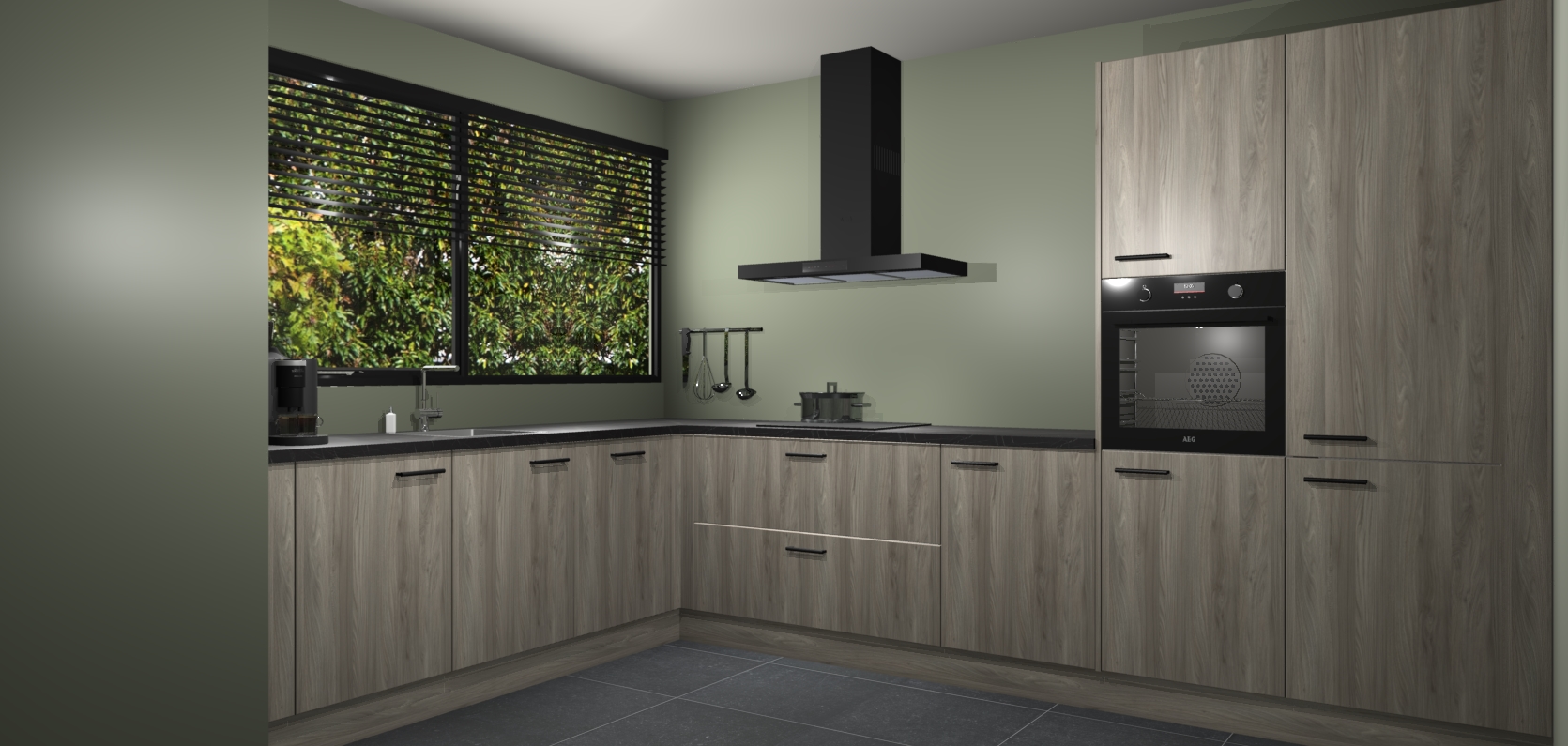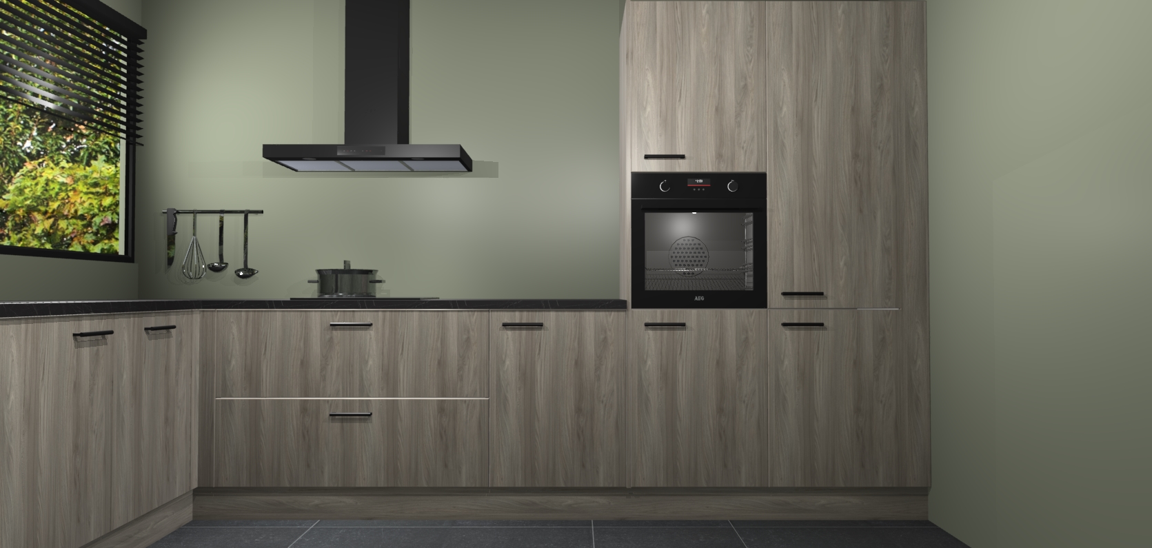 Met een modern, tijdloos design en ruime opslagruimte, zult u zich in no-time thuis voelen in uw nieuwe keuken. Uw leven wordt eenvoudiger met de soft-close deuren die voor het ultieme stille comfort zorgen - geen geluid dat u stoort terwijl u kookt. Ook is de keuken voorzien van 5 ingebouwde apparaten: een oven, inductie kookplaat, afzuigkap, vaatwasser en koelkast. Deze kunnen gemakkelijk na bestelling worden bijgewerkt naar AEG - waardoor uw luxe ervaring compleet is.