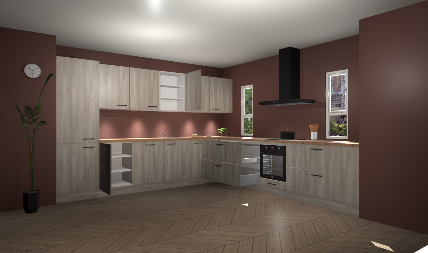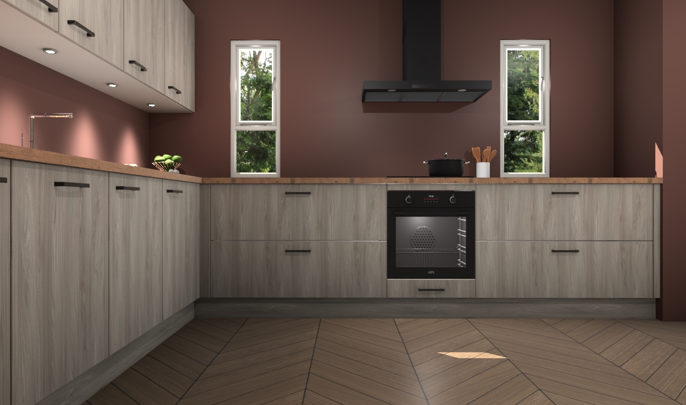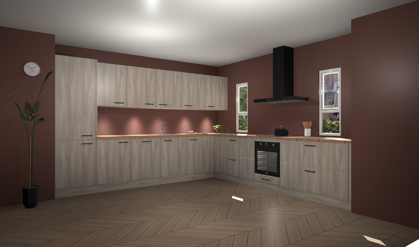 De olm keuken is een ideale hoekkeuken en heeft alle functies en apparatuur die u maar nodig kunt hebben. Bij de bestelling krijgt u een oven, inductiekookplaat, afzuigkap, vaatwasser en koelkast - deze kunnen desgewenst eenvoudig worden uitgebreid naar AEG na bestellen. Elke kast wordt ook voor gemonteerd geleverd met soft close deuren die jarenlang gebruik beloven. Stelt u zich voor dat u geen gedoe heeft met vervelende montage - vanaf het moment dat u uw bestelling plaats, duurt het slechts 7 weken voor het bij u thuis geleverd wordt.