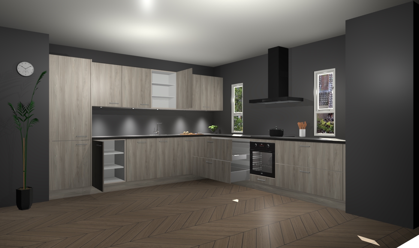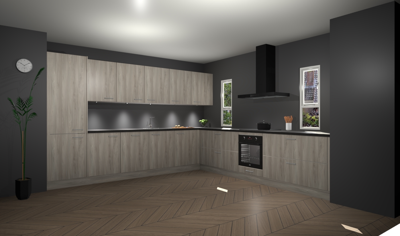 De olm keuken is een ideale hoekkeuken en heeft alle functies en apparatuur die u maar nodig kunt hebben. Bij de bestelling krijgt u een oven, inductiekookplaat, afzuigkap, vaatwasser en koelkast - deze kunnen desgewenst eenvoudig worden uitgebreid naar AEG na bestellen. Elke kast wordt ook voor gemonteerd geleverd met soft close deuren die jarenlang gebruik beloven. Stelt u zich voor dat u geen gedoe heeft met vervelende montage - vanaf het moment dat u uw bestelling plaats, duurt het slechts 7 weken voor het bij u thuis geleverd wordt.