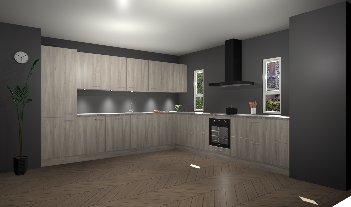 De olm keuken is een ideale hoekkeuken en heeft alle functies en apparatuur die u maar nodig kunt hebben. Bij de bestelling krijgt u een oven, inductiekookplaat, afzuigkap, vaatwasser en koelkast - deze kunnen desgewenst eenvoudig worden uitgebreid naar AEG na bestellen. Elke kast wordt ook voor gemonteerd geleverd met soft close deuren die jarenlang gebruik beloven. Stelt u zich voor dat u geen gedoe heeft met vervelende montage - vanaf het moment dat u uw bestelling plaats, duurt het slechts 7 weken voor het bij u thuis geleverd wordt.