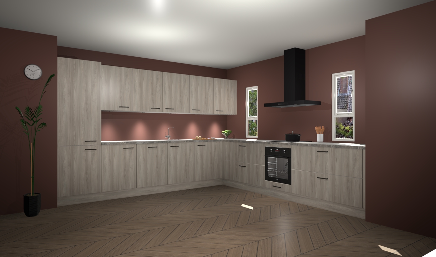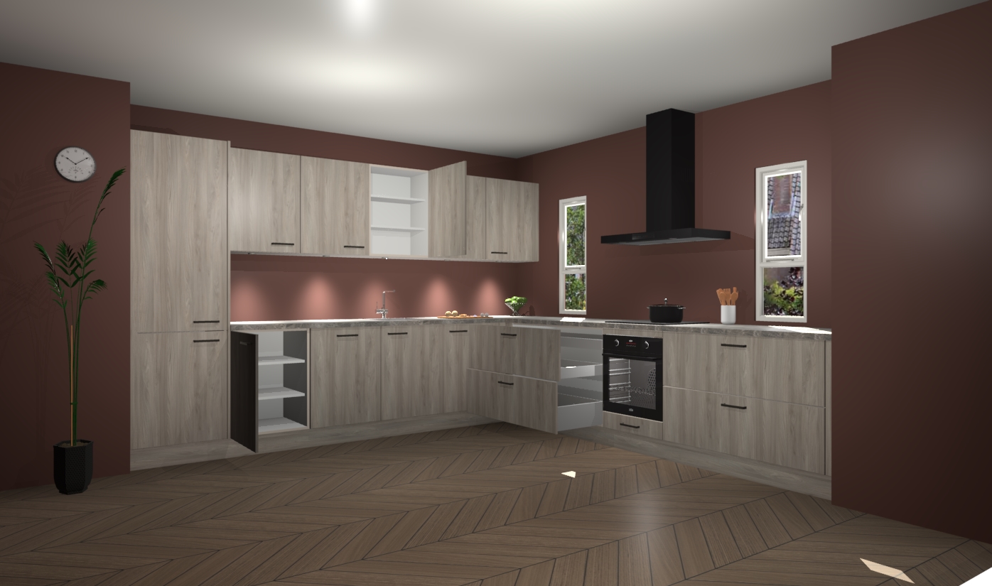 De olm keuken is een ideale hoekkeuken en heeft alle functies en apparatuur die u maar nodig kunt hebben. Bij de bestelling krijgt u een oven, inductiekookplaat, afzuigkap, vaatwasser en koelkast - deze kunnen desgewenst eenvoudig worden uitgebreid naar AEG na bestellen. Elke kast wordt ook voor gemonteerd geleverd met soft close deuren die jarenlang gebruik beloven. Stelt u zich voor dat u geen gedoe heeft met vervelende montage - vanaf het moment dat u uw bestelling plaats, duurt het slechts 7 weken voor het bij u thuis geleverd wordt.