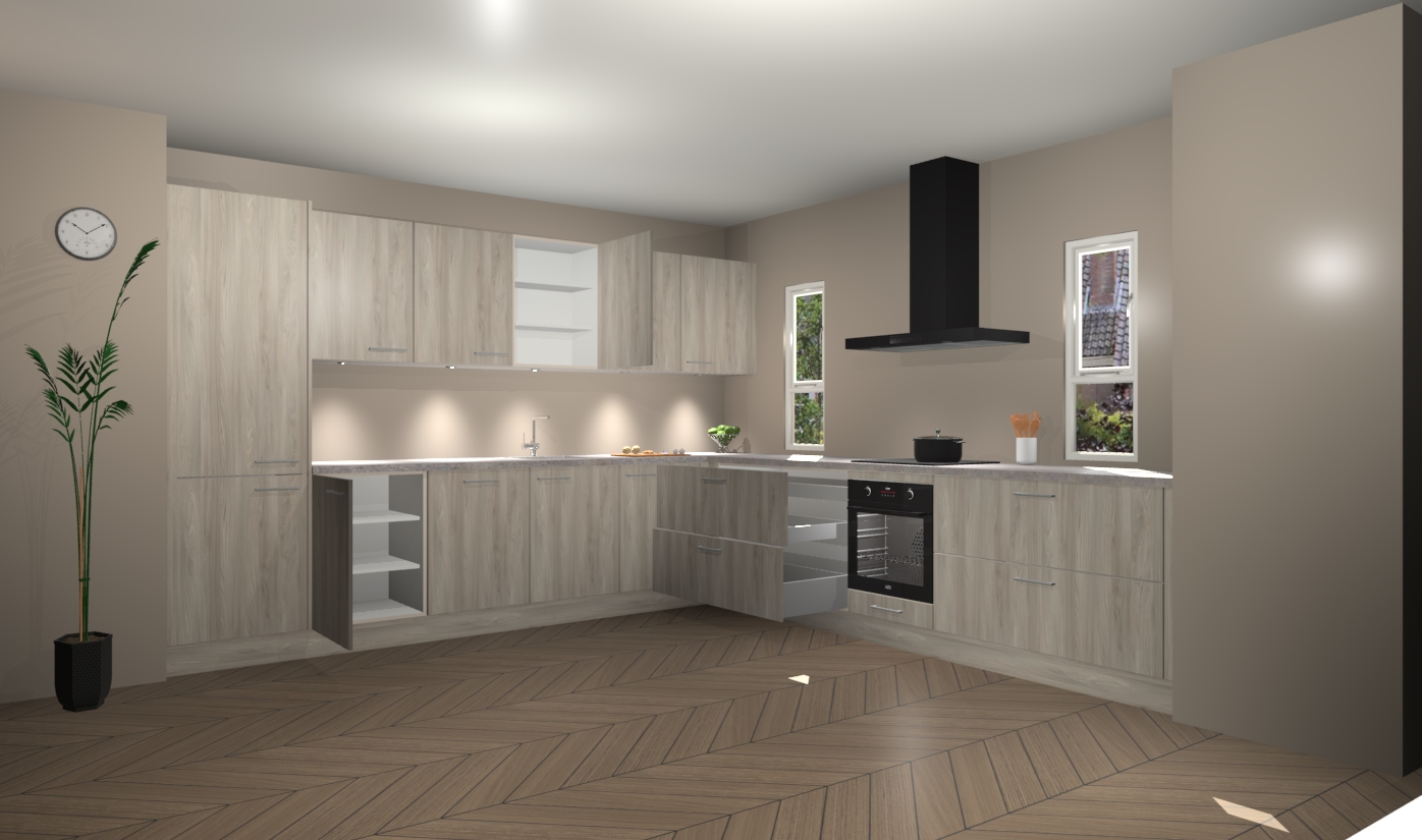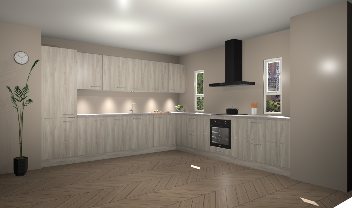 De olm keuken is een ideale hoekkeuken en heeft alle functies en apparatuur die u maar nodig kunt hebben. Bij de bestelling krijgt u een oven, inductiekookplaat, afzuigkap, vaatwasser en koelkast - deze kunnen desgewenst eenvoudig worden uitgebreid naar AEG na bestellen. Elke kast wordt ook voor gemonteerd geleverd met soft close deuren die jarenlang gebruik beloven. Stelt u zich voor dat u geen gedoe heeft met vervelende montage - vanaf het moment dat u uw bestelling plaats, duurt het slechts 7 weken voor het bij u thuis geleverd wordt.