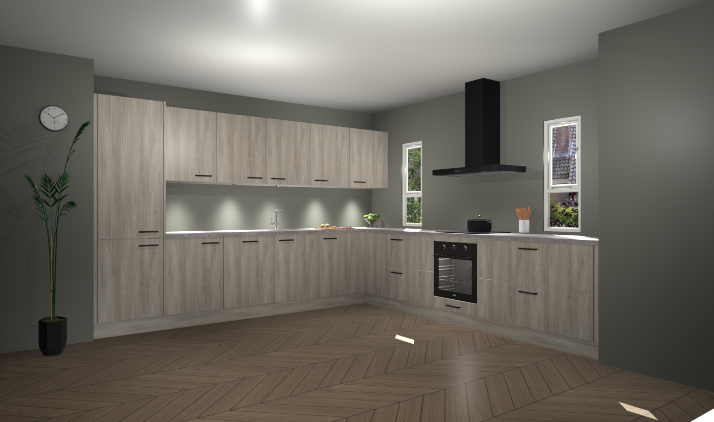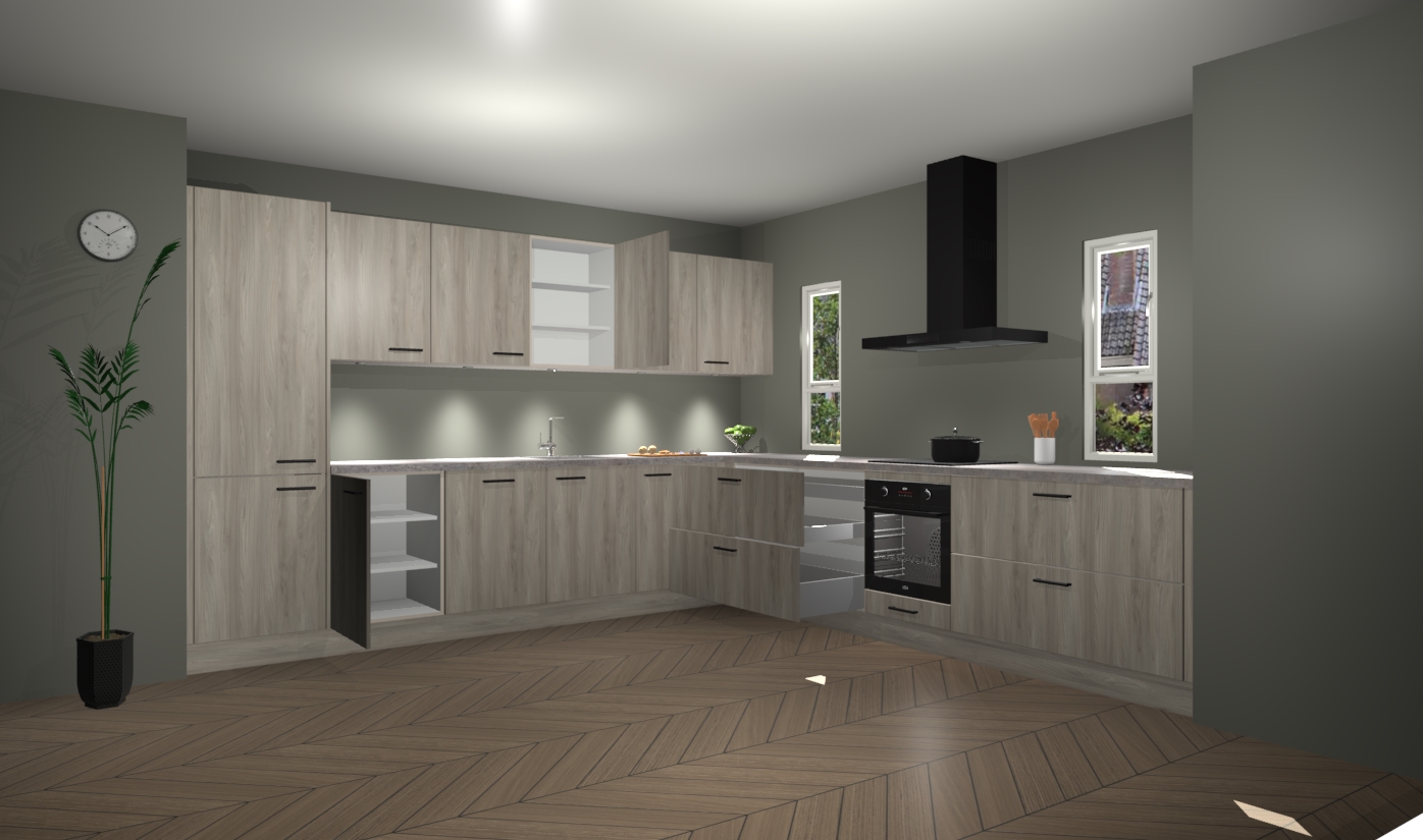 De olm keuken is een ideale hoekkeuken en heeft alle functies en apparatuur die u maar nodig kunt hebben. Bij de bestelling krijgt u een oven, inductiekookplaat, afzuigkap, vaatwasser en koelkast - deze kunnen desgewenst eenvoudig worden uitgebreid naar AEG na bestellen. Elke kast wordt ook voor gemonteerd geleverd met soft close deuren die jarenlang gebruik beloven. Stelt u zich voor dat u geen gedoe heeft met vervelende montage - vanaf het moment dat u uw bestelling plaats, duurt het slechts 7 weken voor het bij u thuis geleverd wordt.