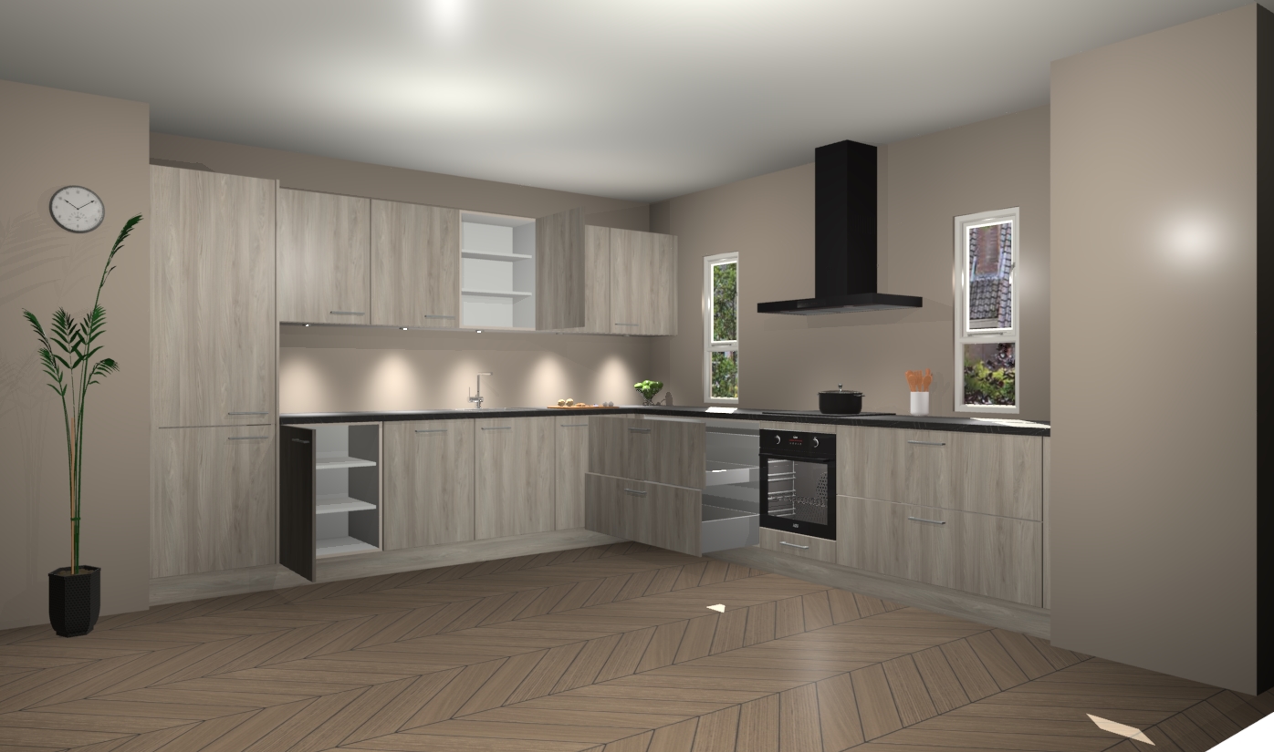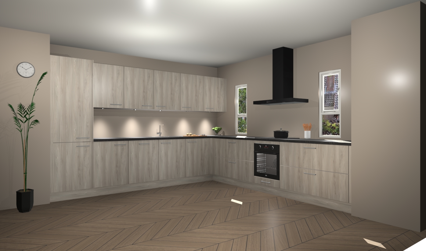 De olm keuken is een ideale hoekkeuken en heeft alle functies en apparatuur die u maar nodig kunt hebben. Bij de bestelling krijgt u een oven, inductiekookplaat, afzuigkap, vaatwasser en koelkast - deze kunnen desgewenst eenvoudig worden uitgebreid naar AEG na bestellen. Elke kast wordt ook voor gemonteerd geleverd met soft close deuren die jarenlang gebruik beloven. Stelt u zich voor dat u geen gedoe heeft met vervelende montage - vanaf het moment dat u uw bestelling plaats, duurt het slechts 7 weken voor het bij u thuis geleverd wordt.