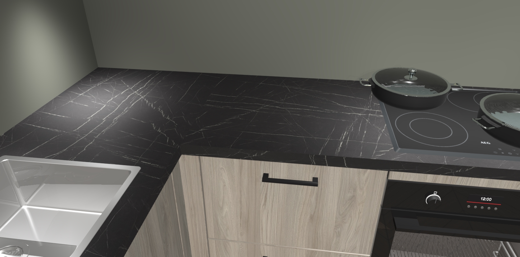 - Bij een hoekwerkblad zijn de hoeken in gevreesd en op maat gemaakt