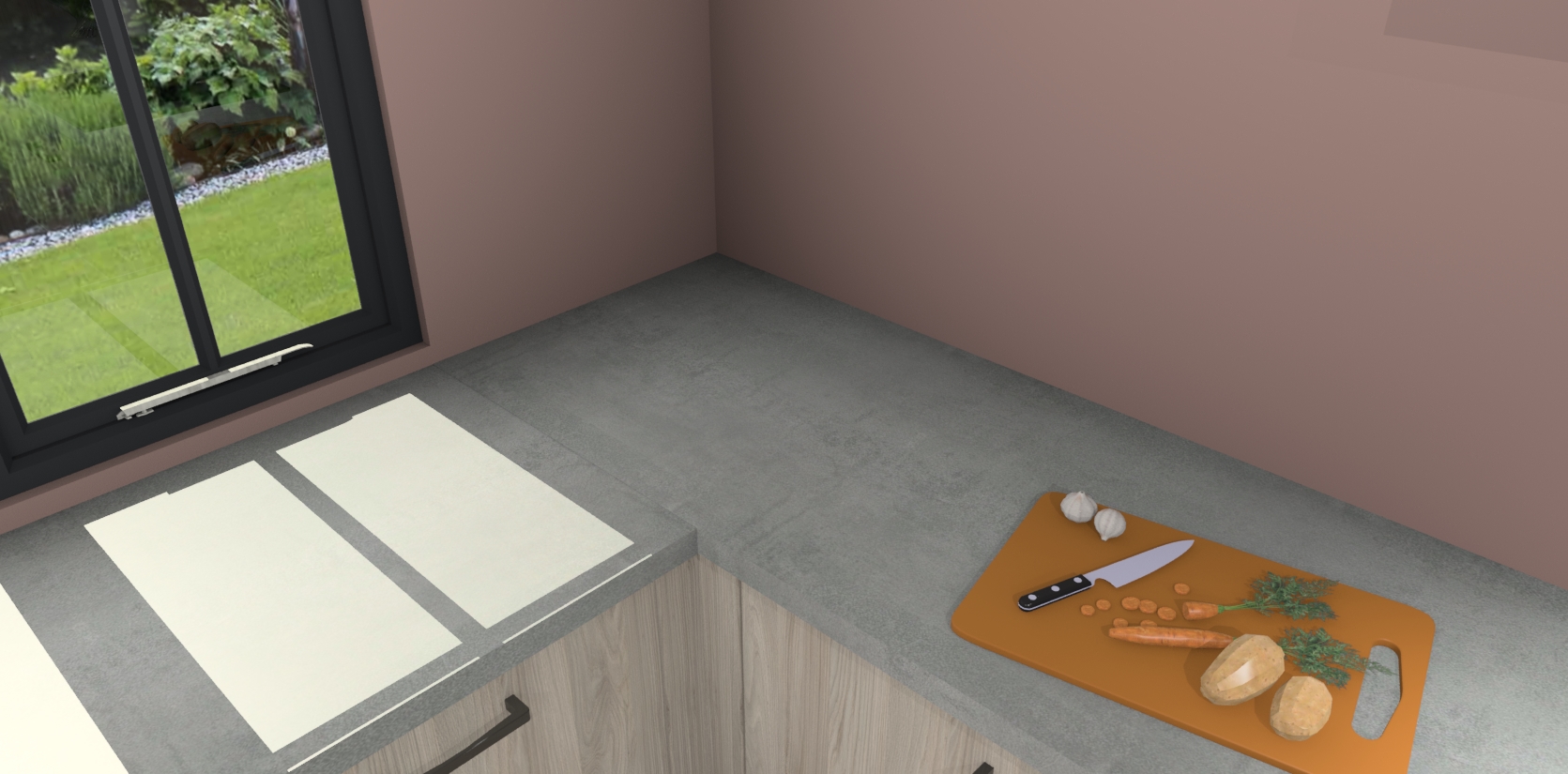 - Bij een hoekwerkblad zijn de hoeken in gevreesd en op maat gemaakt
