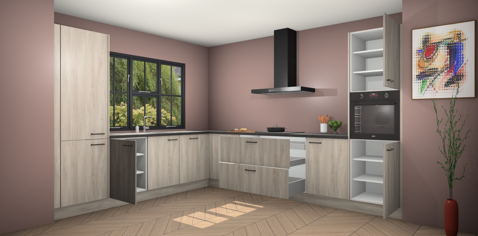 In deze box zijn alle kleuren verzameld van de deuren en werkbladen. Vraag de gratis kleurenbox aan en kijk thuis rustig verder!