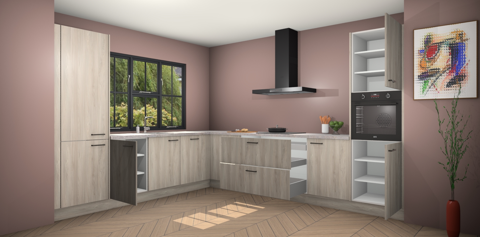 In deze box zijn alle kleuren verzameld van de deuren en werkbladen. Vraag de gratis kleurenbox aan en kijk thuis rustig verder!