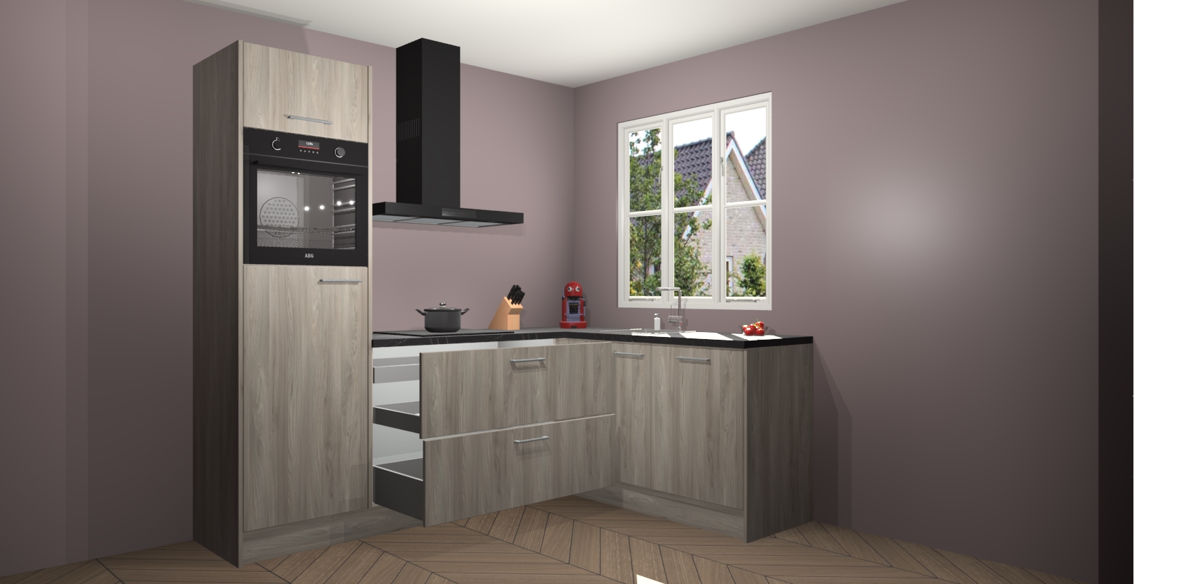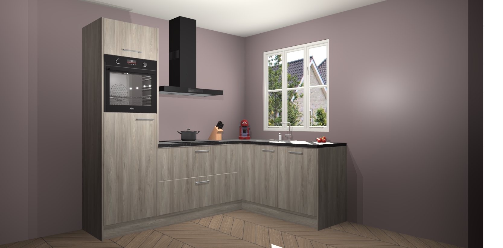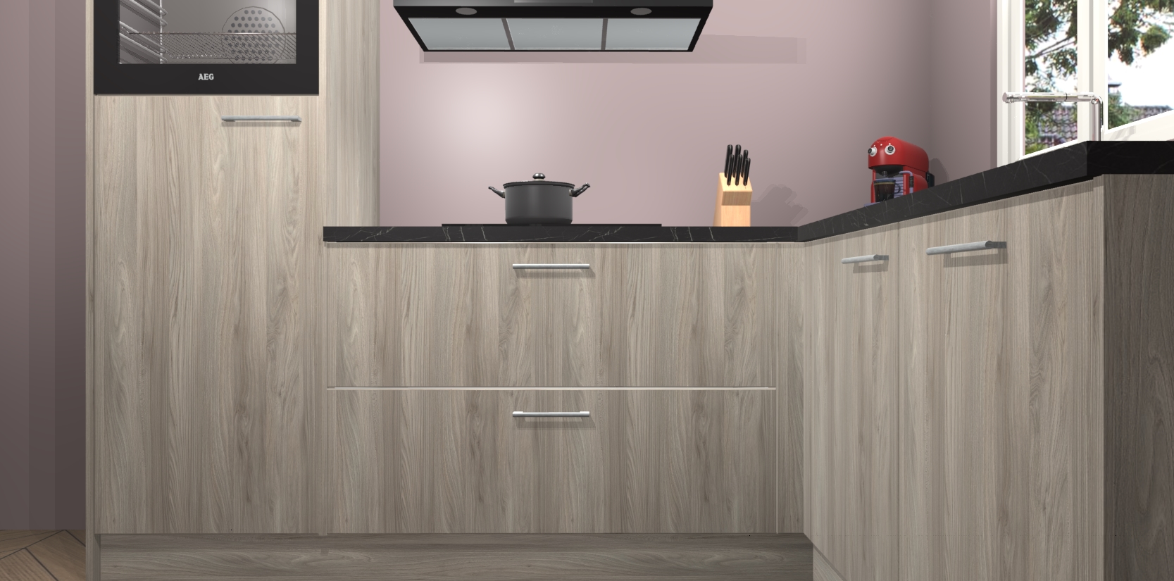 Dit model biedt u voldoende opbergruimte en vijf ingebouwde apparaten: een oven, inductiekookplaat, afzuigkap, vaatwasser en koelkast. Deze apparaten kunnen gemakkelijk worden geüpgrade naar AEG nadat u besteld heeft. De verschillende laden en kastjes bevatten softclose-deuren waardoor ze gezellig dichtvallen met een geruststellend helemaal geruisloos geluid. En dat is nog niet alles! We garanderen ook dat de prijs altijd laag blijft - dus haal nu uw Olm keuken Victoria terwijl het kan.