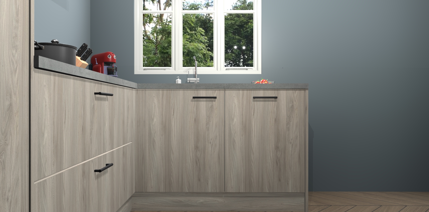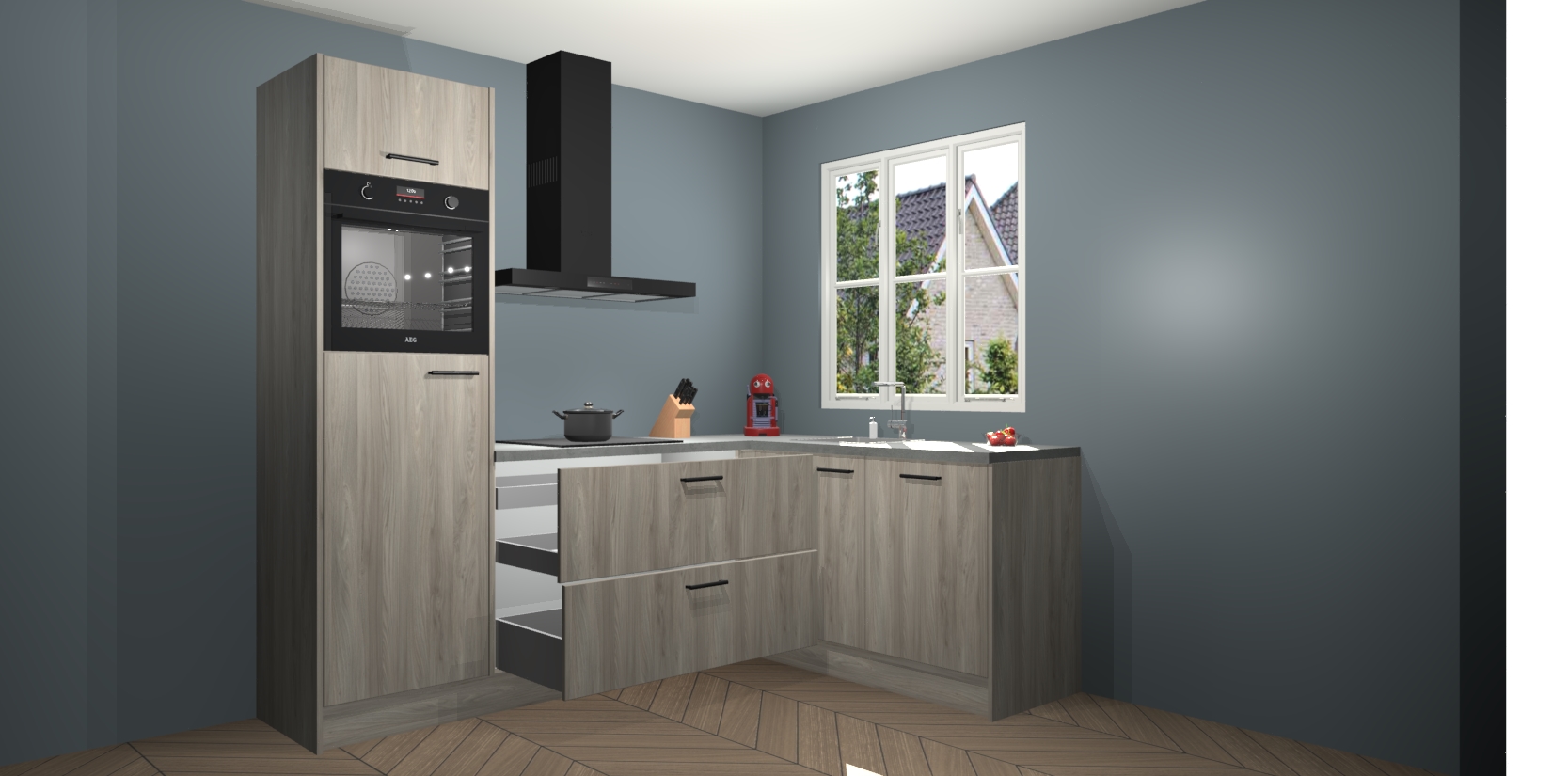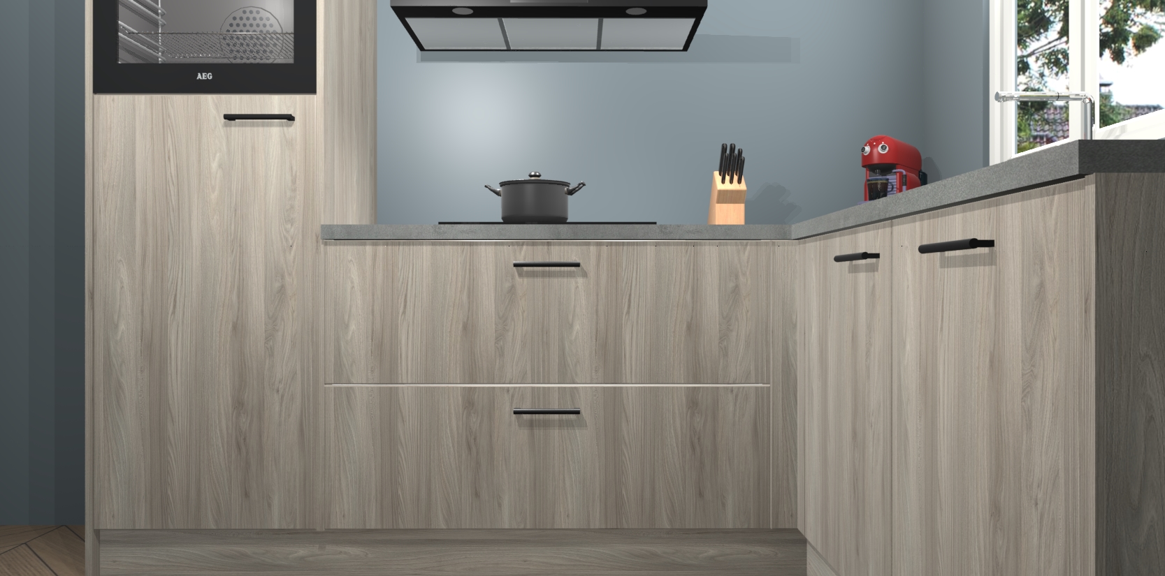 Dit model biedt u voldoende opbergruimte en vijf ingebouwde apparaten: een oven, inductiekookplaat, afzuigkap, vaatwasser en koelkast. Deze apparaten kunnen gemakkelijk worden geüpgrade naar AEG nadat u besteld heeft. De verschillende laden en kastjes bevatten softclose-deuren waardoor ze gezellig dichtvallen met een geruststellend helemaal geruisloos geluid. En dat is nog niet alles! We garanderen ook dat de prijs altijd laag blijft - dus haal nu uw Olm keuken Victoria terwijl het kan.