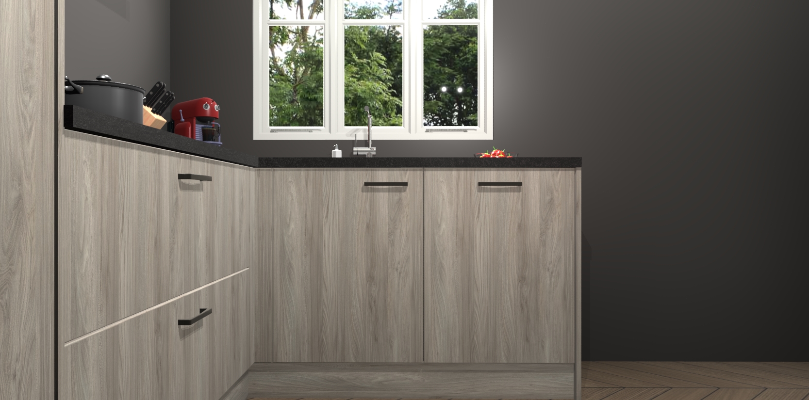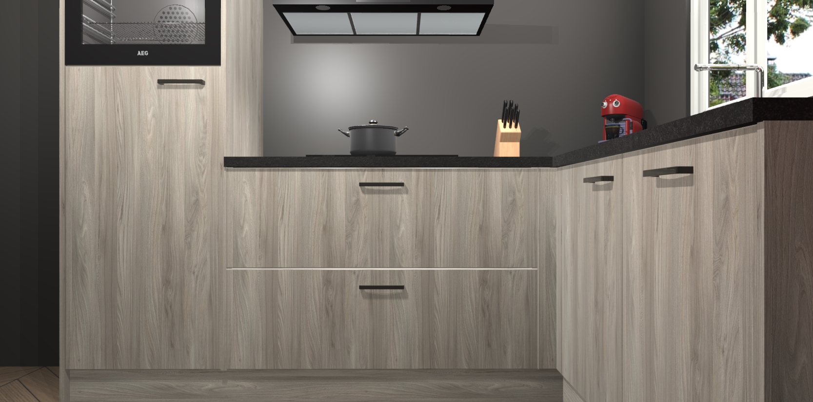 Dit model biedt u voldoende opbergruimte en vijf ingebouwde apparaten: een oven, inductiekookplaat, afzuigkap, vaatwasser en koelkast. Deze apparaten kunnen gemakkelijk worden geüpgrade naar AEG nadat u besteld heeft. De verschillende laden en kastjes bevatten softclose-deuren waardoor ze gezellig dichtvallen met een geruststellend helemaal geruisloos geluid. En dat is nog niet alles! We garanderen ook dat de prijs altijd laag blijft - dus haal nu uw Olm keuken Victoria terwijl het kan.
