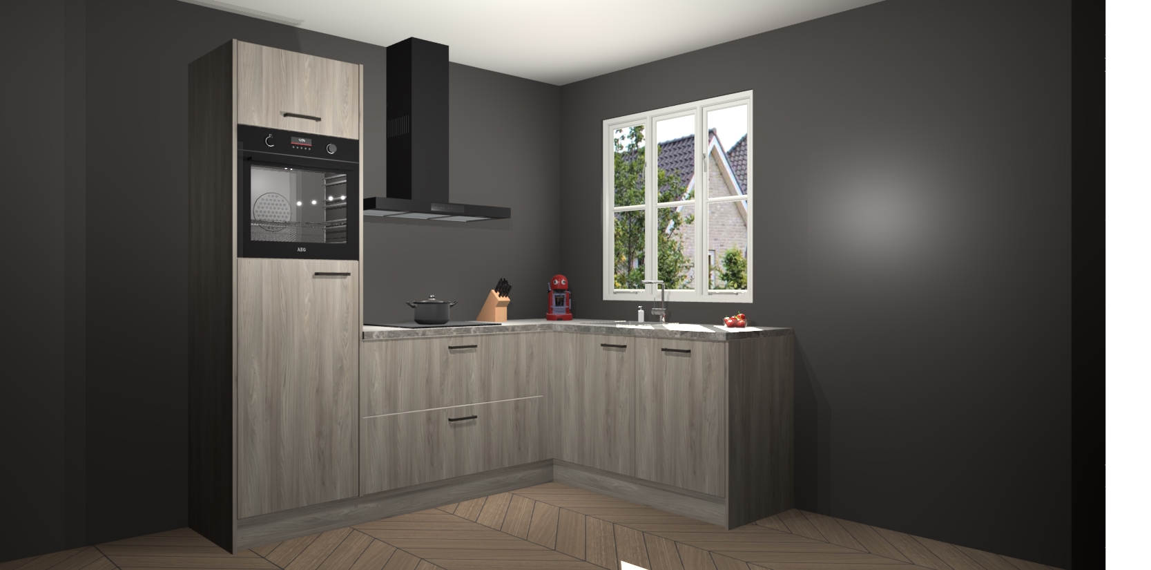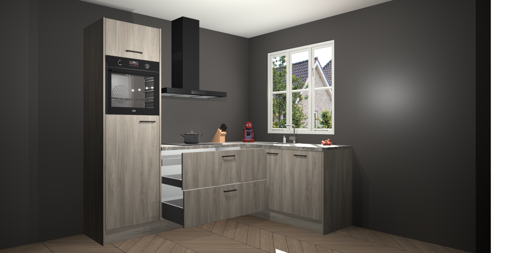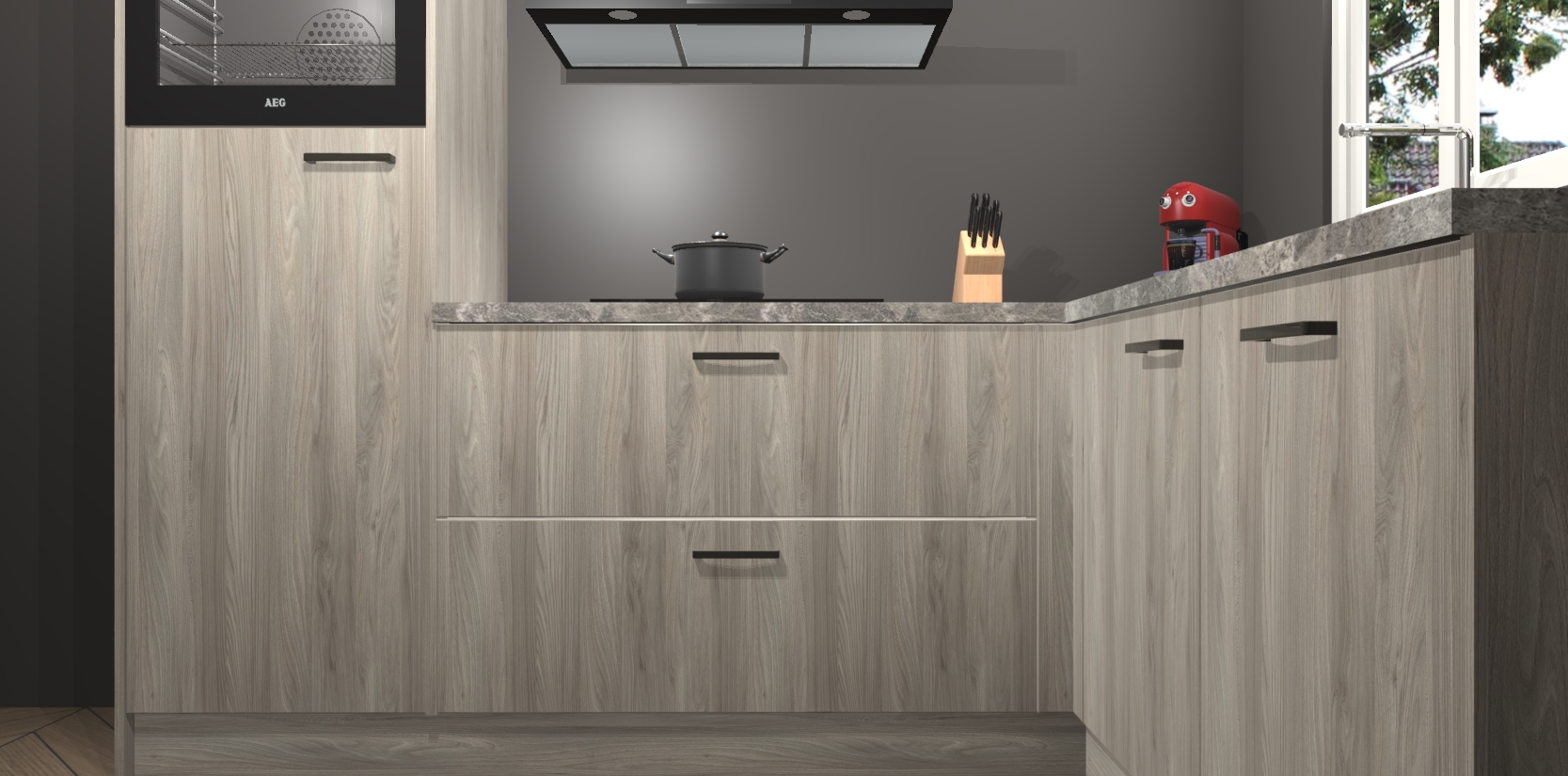 Dit model biedt u voldoende opbergruimte en vijf ingebouwde apparaten: een oven, inductiekookplaat, afzuigkap, vaatwasser en koelkast. Deze apparaten kunnen gemakkelijk worden geüpgrade naar AEG nadat u besteld heeft. De verschillende laden en kastjes bevatten softclose-deuren waardoor ze gezellig dichtvallen met een geruststellend helemaal geruisloos geluid. En dat is nog niet alles! We garanderen ook dat de prijs altijd laag blijft - dus haal nu uw Olm keuken Victoria terwijl het kan.