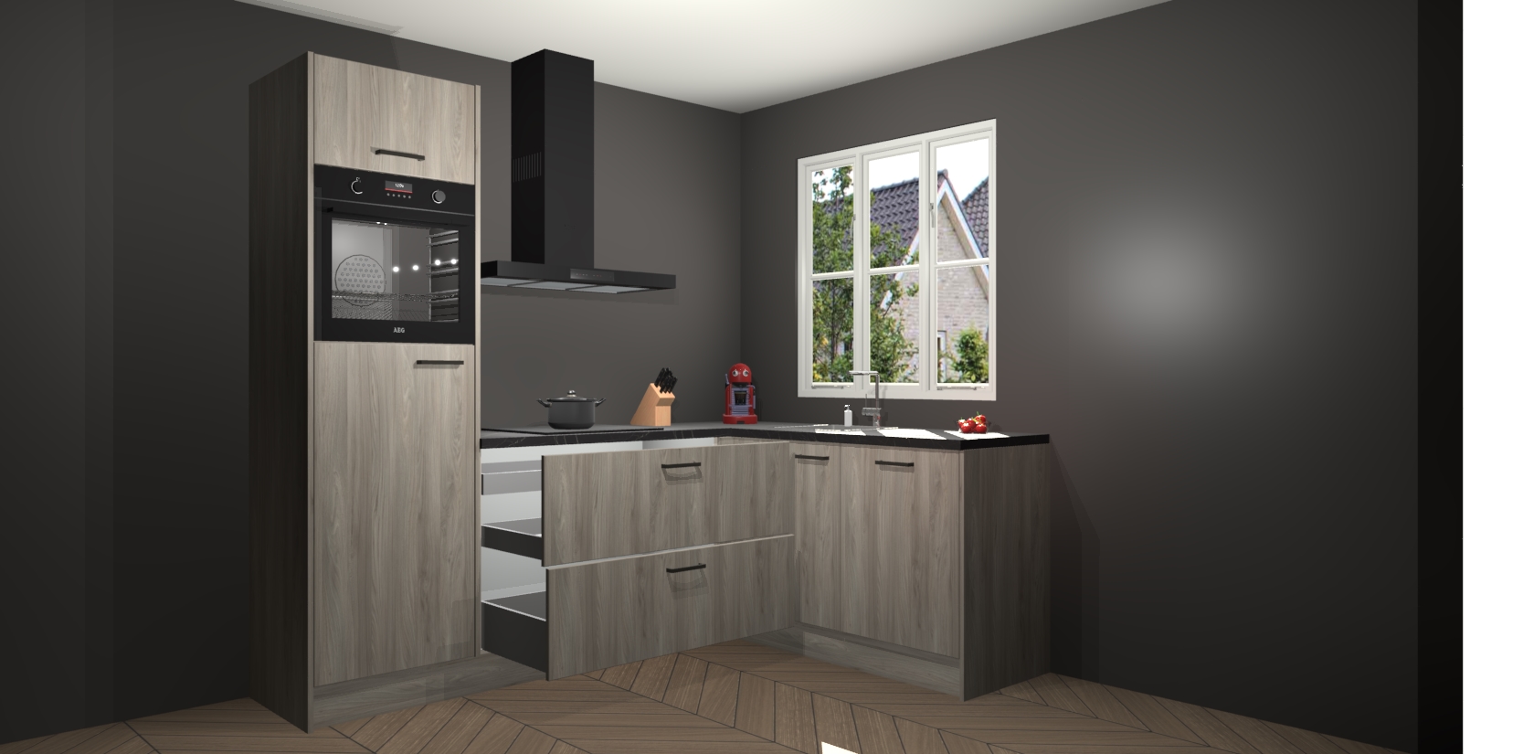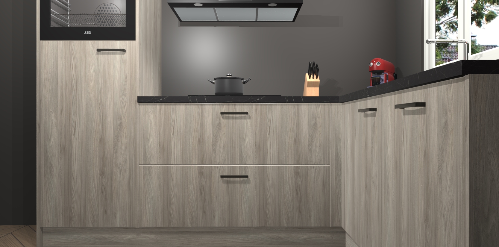 Dit model biedt u voldoende opbergruimte en vijf ingebouwde apparaten: een oven, inductiekookplaat, afzuigkap, vaatwasser en koelkast. Deze apparaten kunnen gemakkelijk worden geüpgrade naar AEG nadat u besteld heeft. De verschillende laden en kastjes bevatten softclose-deuren waardoor ze gezellig dichtvallen met een geruststellend helemaal geruisloos geluid. En dat is nog niet alles! We garanderen ook dat de prijs altijd laag blijft - dus haal nu uw Olm keuken Victoria terwijl het kan.