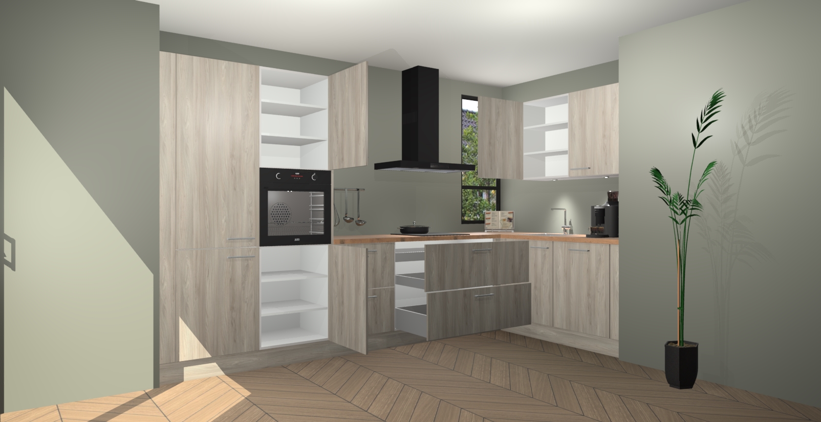 Welkom in uw nieuwe moderne keuken! Laat ons u voorstellen aan de Olm keuken Vlaanderen . Deze prachtige hoekkeuken straalt exclusiviteit en luxe uit als geen ander. Het strakke design, de tijdloze kleuren en het model maken van deze keuken een moderne klassieker. En met voldoende opbergruimte heeft deze keuken echt voor ieder wat wils.