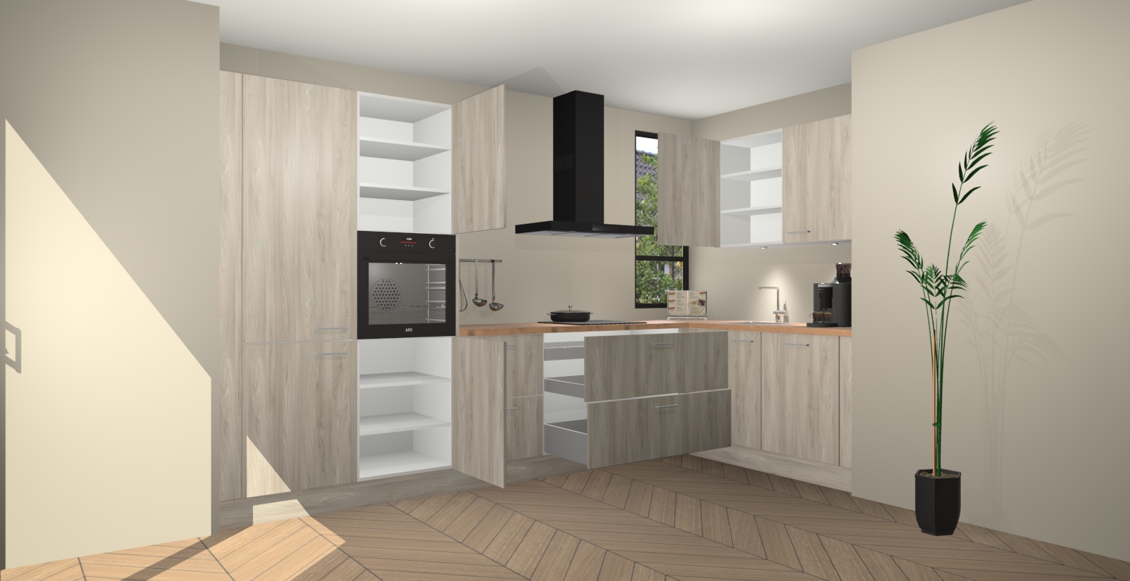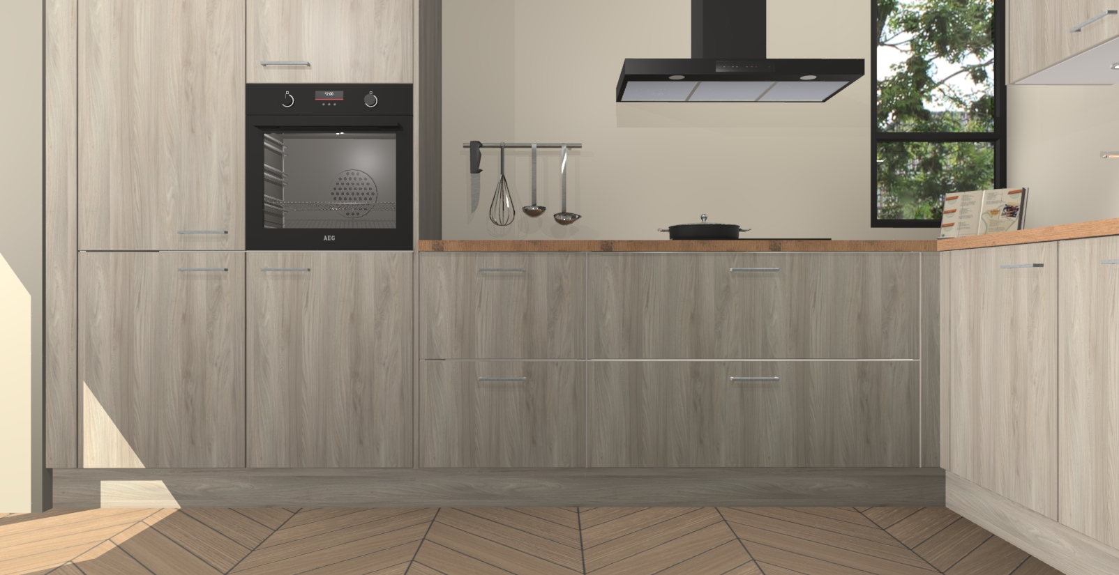 Welkom in uw nieuwe moderne keuken! Laat ons u voorstellen aan de Olm keuken Vlaanderen . Deze prachtige hoekkeuken straalt exclusiviteit en luxe uit als geen ander. Het strakke design, de tijdloze kleuren en het model maken van deze keuken een moderne klassieker. En met voldoende opbergruimte heeft deze keuken echt voor ieder wat wils.