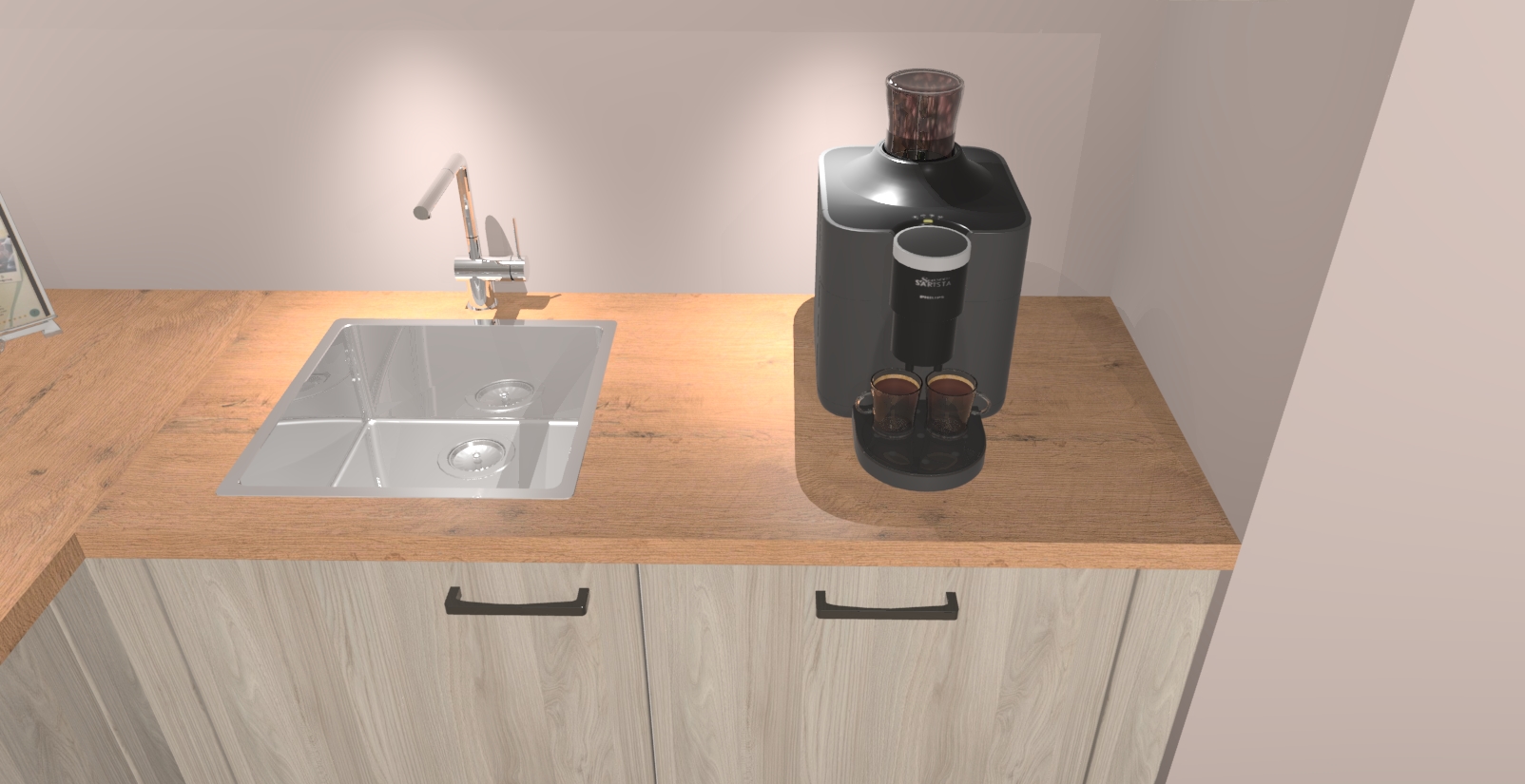 • De spoelbak is nog niet in gevreesd. Dit dient tijdens het werk gedaan te worden