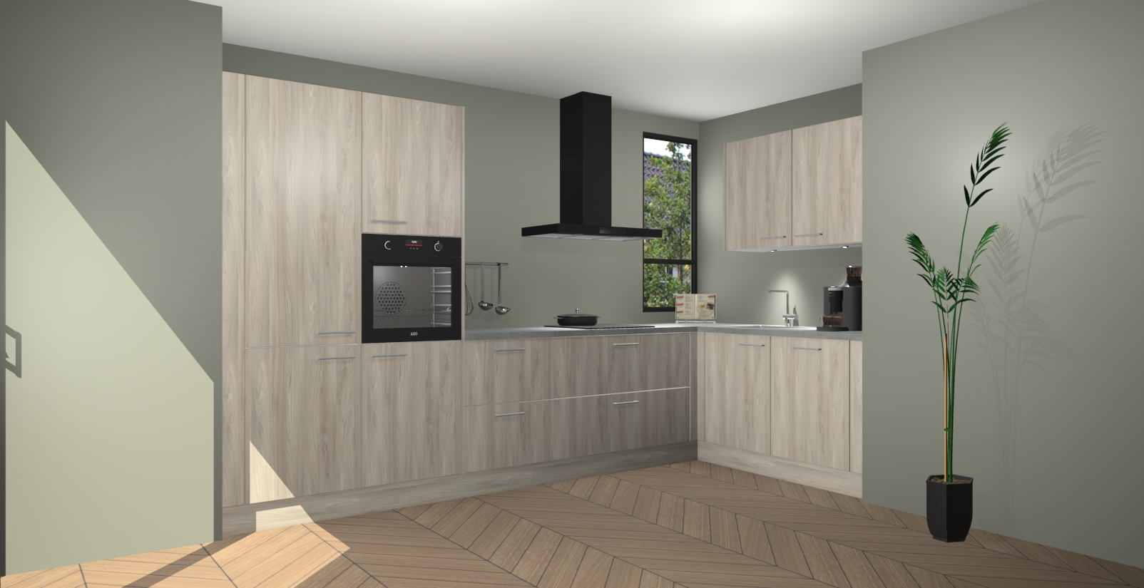 Welkom in uw nieuwe moderne keuken! Laat ons u voorstellen aan de Olm keuken Vlaanderen . Deze prachtige hoekkeuken straalt exclusiviteit en luxe uit als geen ander. Het strakke design, de tijdloze kleuren en het model maken van deze keuken een moderne klassieker. En met voldoende opbergruimte heeft deze keuken echt voor ieder wat wils.