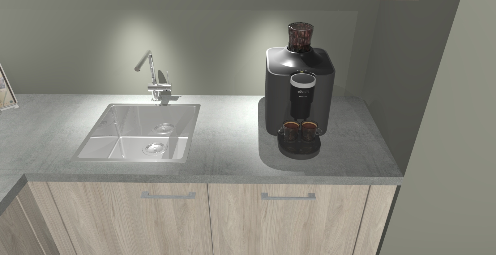 - De spoelbak is nog niet in gevreesd. Dit dient tijdens het werk gedaan te worden