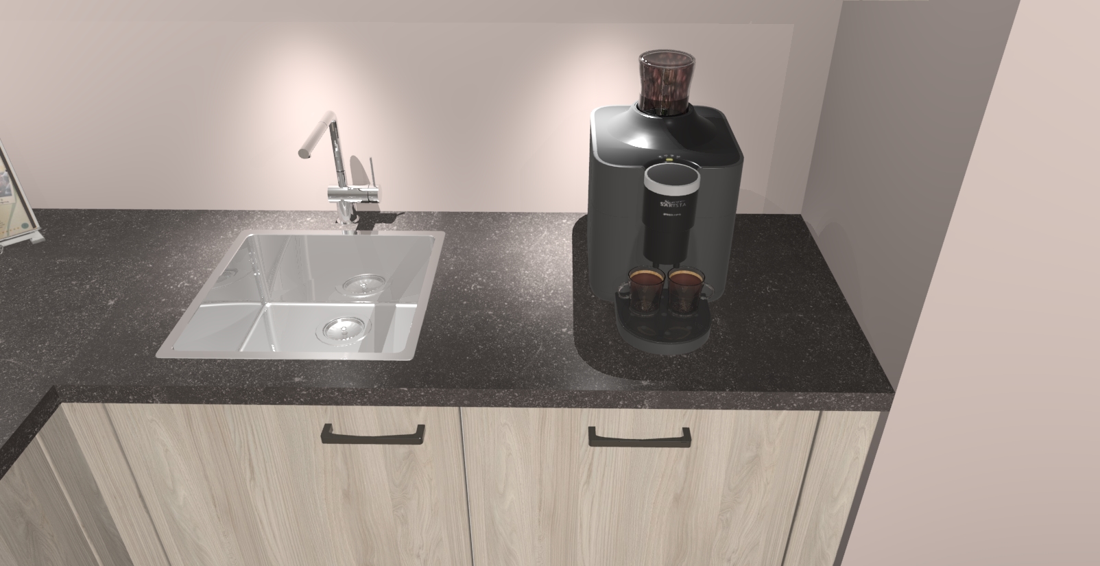 - De spoelbak is nog niet in gevreesd. Dit dient tijdens het werk gedaan te worden