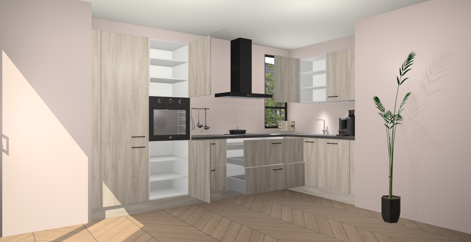 Welkom in uw nieuwe moderne keuken! Laat ons u voorstellen aan de Olm keuken Vlaanderen . Deze prachtige hoekkeuken straalt exclusiviteit en luxe uit als geen ander. Het strakke design, de tijdloze kleuren en het model maken van deze keuken een moderne klassieker. En met voldoende opbergruimte heeft deze keuken echt voor ieder wat wils.